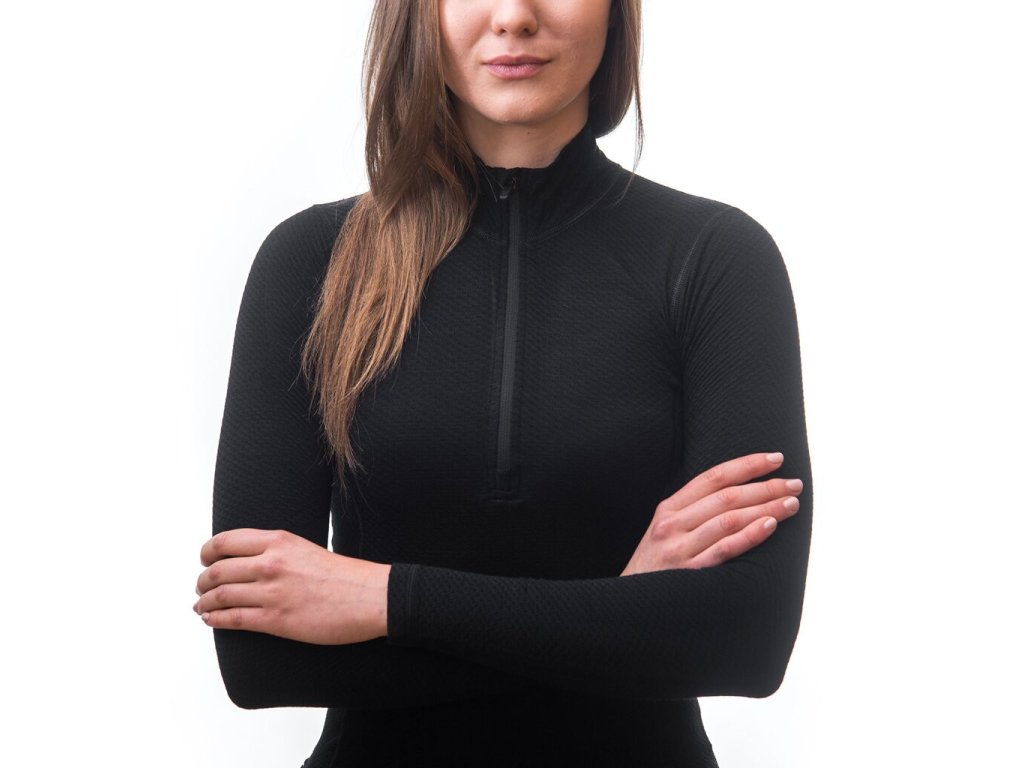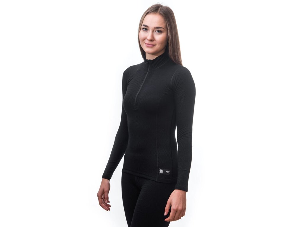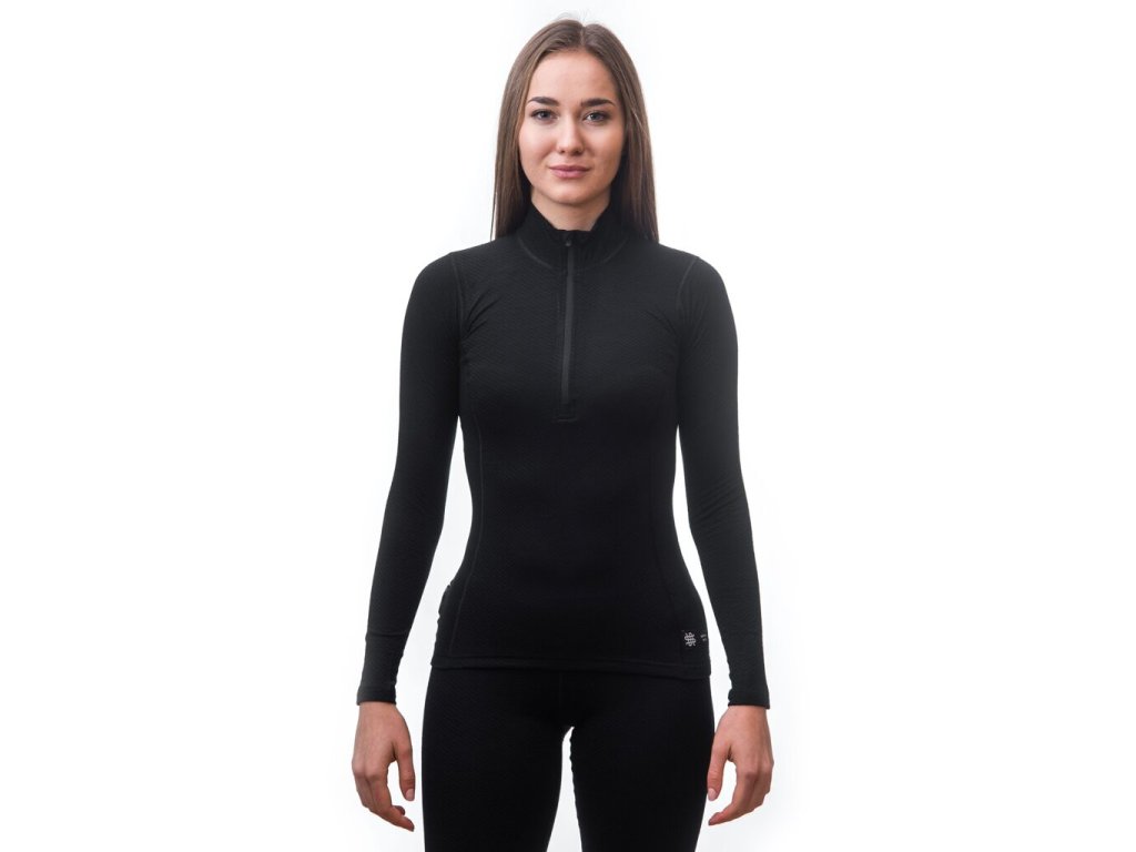 EGLOO DF MERINO ZipperNeck BaseSet dámske tričko s dlhým rukávom ZIP+spodky, čierna