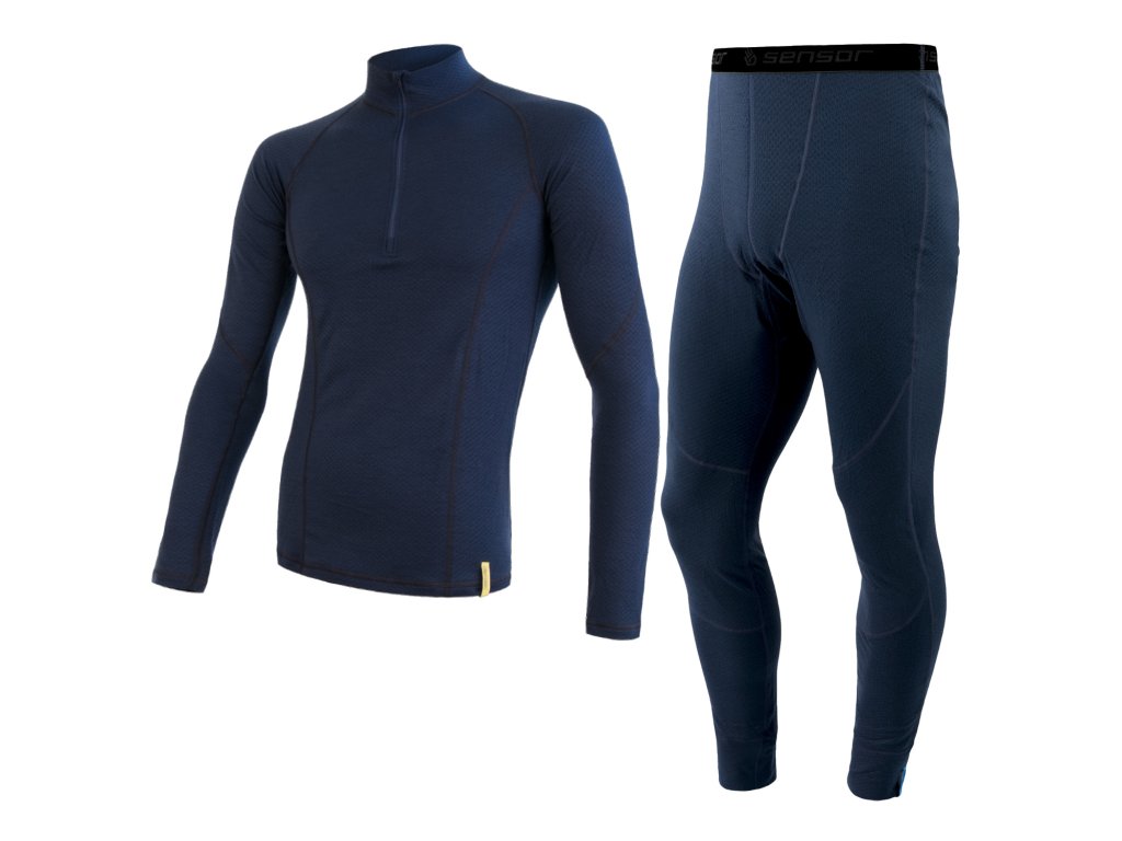 EGLOO DF MERINO ZipperNeck BaseSet pánske nohavice s dlhým rukávom Zip+Bottoms, modré