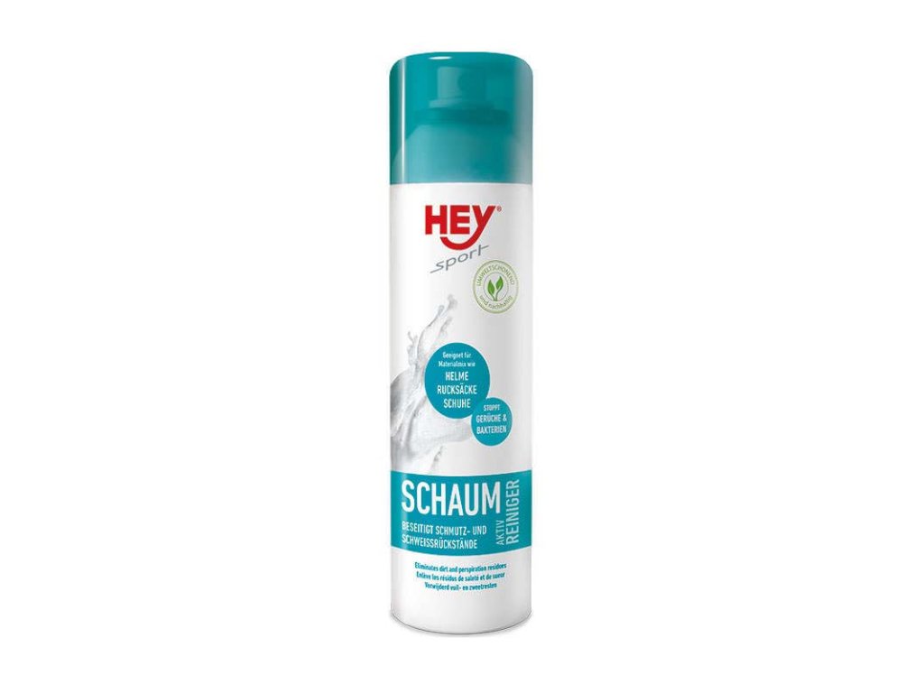 HEY SPORT aktívna pena čistí športové vybavenie, ako sú prilby, topánky a batohy. Spoľahlivo čistí vonkajšiu aj vnútornú stranu predmetov, ktoré nie je možné prať v práčke. Pena je šetrná k čistenému povrchu a neobsahuje parfum.Návod na použitie: Pred použitím pretrepte, nastriekajte penu na znečistené miesto, nechajte pôsobiť a potom utrite suchou handričkou. Nechajte mokrý materiál dôkladne vyschnúť. Pri silnom znečistení postup opakujte. Skúste stálosť farieb a kompatibilitu na zadnej strane čisteného predmetu.