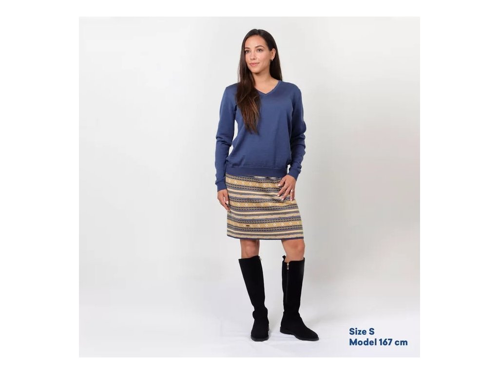 Vzorovaná sukňa z merino vlny sa dá kombinovať s jednofarebnými svetermi. Je pohodlná, elegantná a praktická na každodenné nosenie.