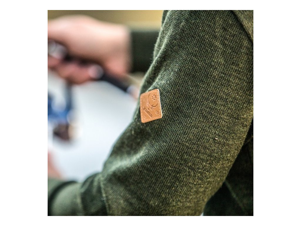 Tento sveter je vyrobený z materiálu Schoeller, ktorý obsahuje 50% merino vlny a 50% akrylu.