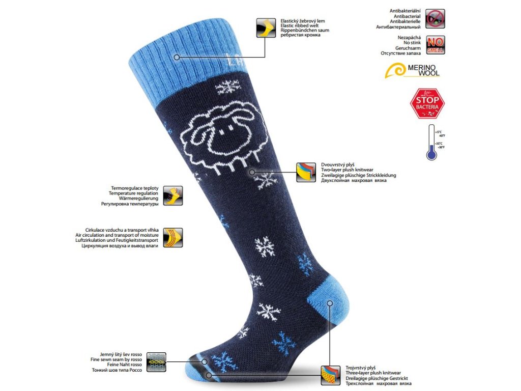 LASTING detské merino lyžiarske ponožky SJW, čierno-modré