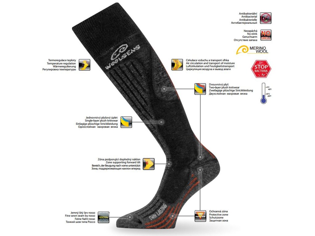 LASTING lyžiarske ponožky merino SWH, čierna+oranžová