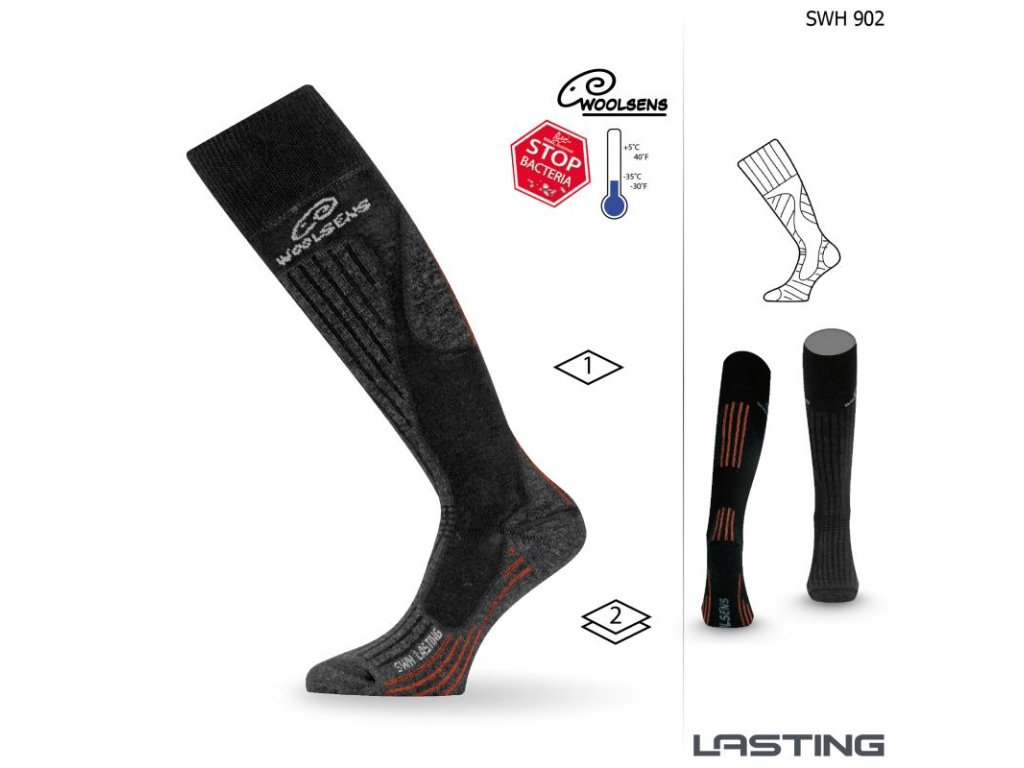 LASTING lyžiarske ponožky merino SWH čierna + oranžová