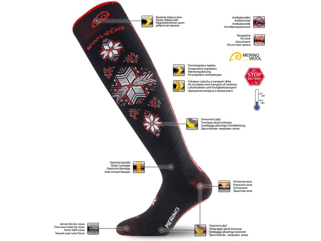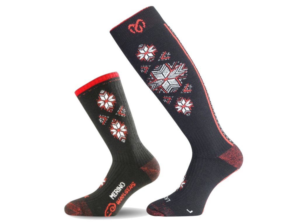 LASTING merino lyžiarske ponožky a ponožky SCK+SWN SET 1+1, čierna/červená