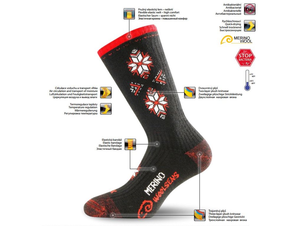 LASTING merino lyžiarske ponožky SCK SET 1+1, čierna, sivá/červená