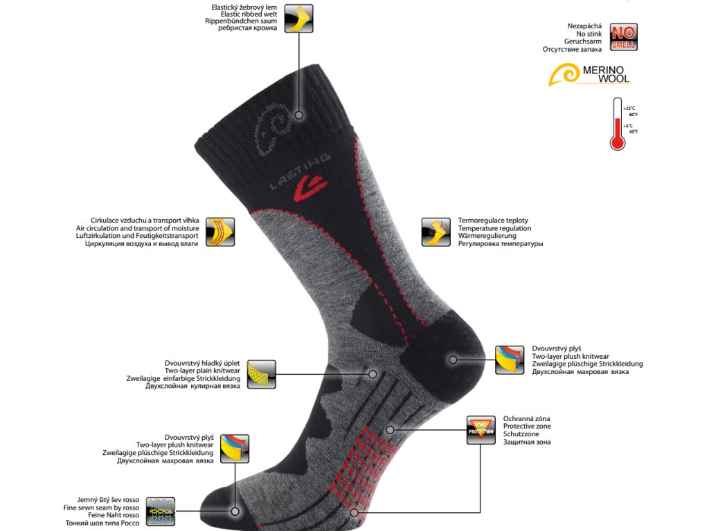 TWA sú stredne hrubé UNISEX predĺžené trekingové ponožky obsahujúce merino vlnu. Poskytujú vynikajúcu tepelnú izoláciu a odvod vlhkosti. Ponožky sú pletené z dvojvrstvového hladkého úpletu. Dvojvrstvá zosilnená plyšová vrstva v oblasti holennej kosti, chodidla, Achillovej päty a špičky zaisťuje vysokú mechanickú odolnosť a ochranu nohy pred otlakmi. Vlna je vysoko antibakteriálna, čím redukuje nepríjemné pachy. Ponožka je zakončená predĺženým elastickým rebrovaným lemom s mäkkým zúžením. Materiál: 85% MERINO WOOL, 10% POLYAMIDE, 5% LYCRA - elastan