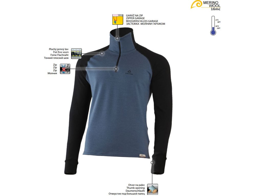 LASTING pánska merino mikina LEO modrá