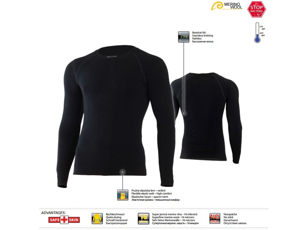 WOLF pánske vlnené bezšvové tričko s dlhými rukávmi, vyrobené z najkvalitnejšej austrálskej merino vlny. Nezápachá ani pri dlhodobom nosení. Vysoký komfort vďaka vynikajúcej odvodnosti vlhkosti. Ploché švy (minimum švov iba v mieste zošitia rukávov a trupu) a perfektné spracovanie úpletu zabezpečujú ideálnu pohyblivosť. Hodí sa ako prvá aj druhá vrstva predovšetkým v období jeseň-jaro. Materiál: 80% merino 200 g, 17% Siltex, 3% lycra,