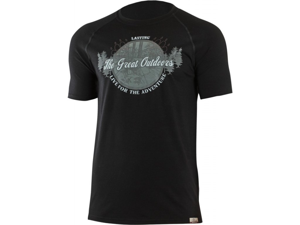 LASTING pánske merino tričko s potlačou LUCAS čierne
