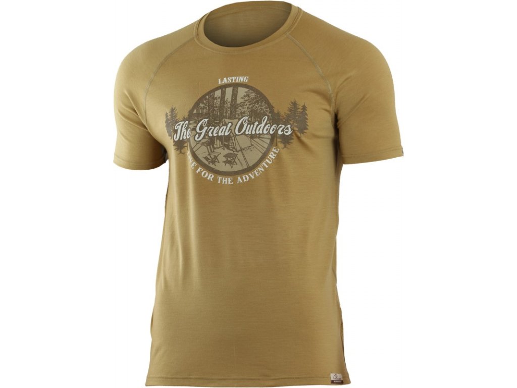 LASTING pánske merino tričko s potlačou LUCAS hnedé