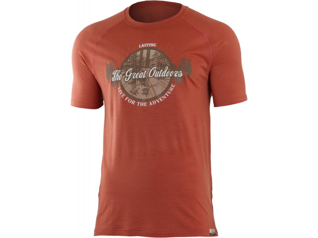 LASTING pánske merino tričko s potlačou LUCAS tehlová