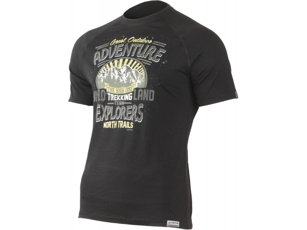 LASTING pánske merino tričko s potlačou WILD čierna