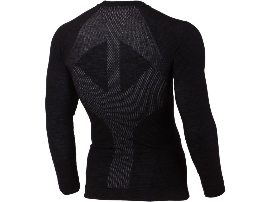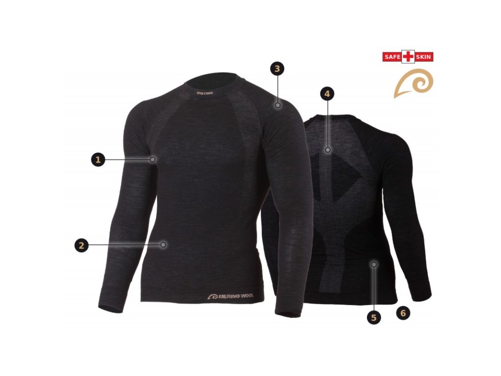 - ochrana pred pocením: zvýšenú tvorbu potu v podpazuší transportuje od pokožky aktívna vrstva. Vďaka prirodzenej antibakteriálnej funkcii merino vlny sa znižuje nepríjemný zápach pri aktívnom športe. Podpora brušných svalov a bokov: oblasť brucha a bokov má podpornú kompresnú funkciu.ochrana pred chladom: ochranu pred chladom v ramenách zabezpečuje plný jednolícny úplet z vlnené priadze