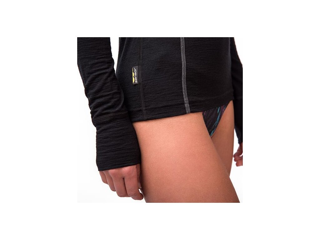 SENSOR MERINO ACTIVE dámske tričko s dlhým rukávom stojačik, čierna