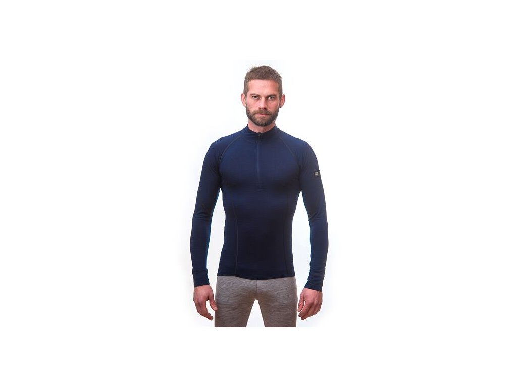 SENSOR MERINO ACTIVE pánske tričko s dlhým rukávom na zips, tmavomodrá