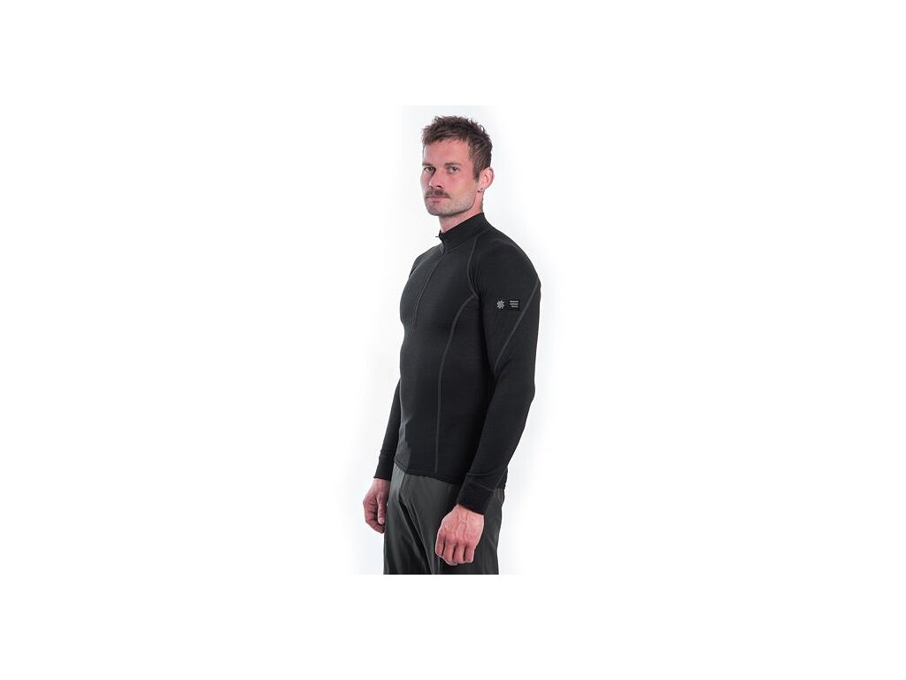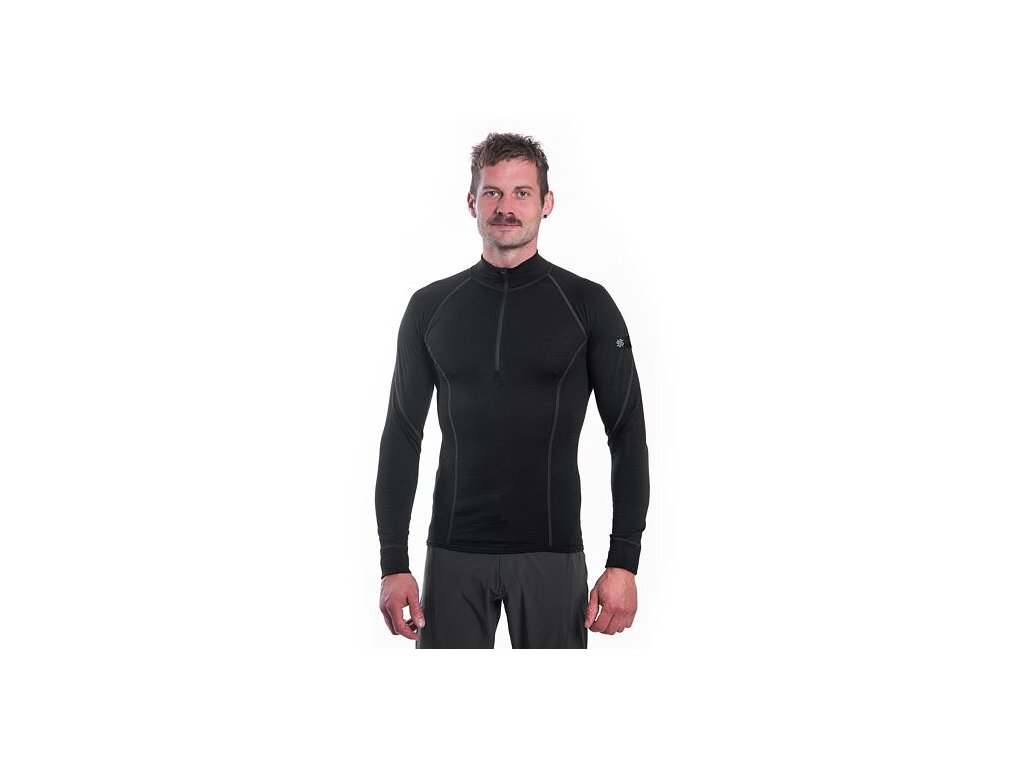 SENSOR MERINO ACTIVE pánske tričko s dlhým rukávom stojáčik na zips, čierna