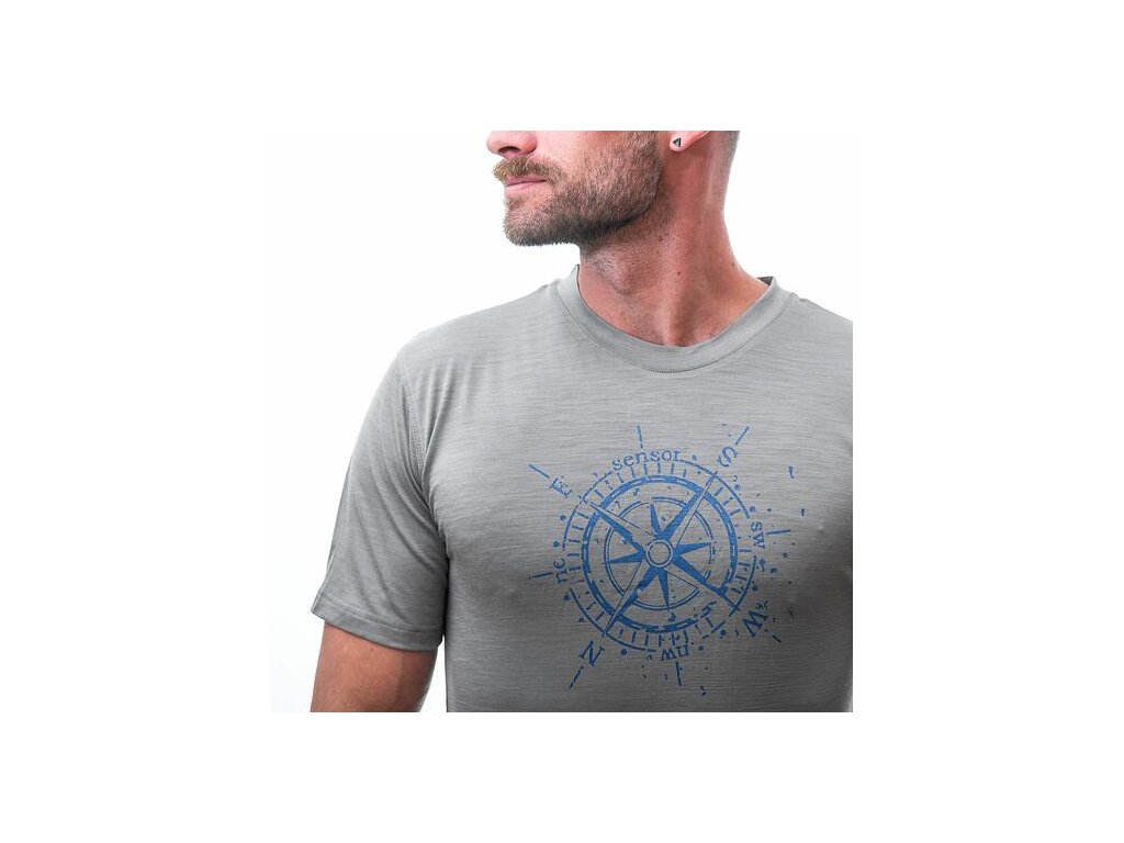 SENSOR MERINO ACTIVE PT COMPASS pánske tričko s krátkým rukávom sivé