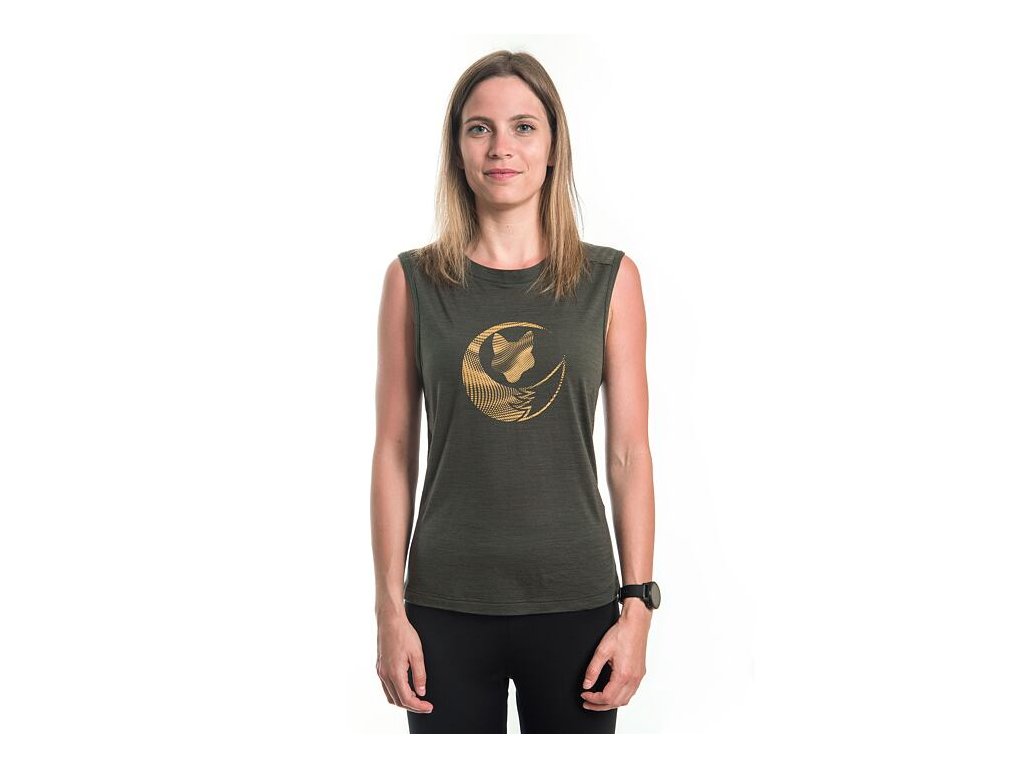 SENSOR MERINO AIR FOX dámske tričko bez rukávov olive, zelená