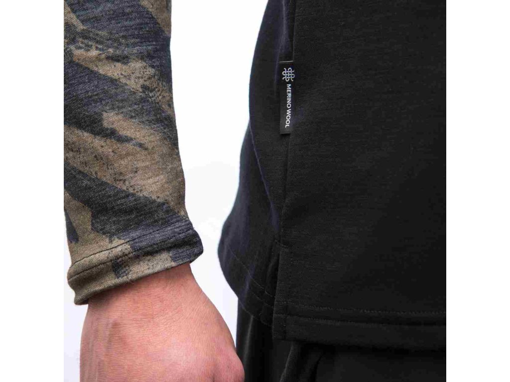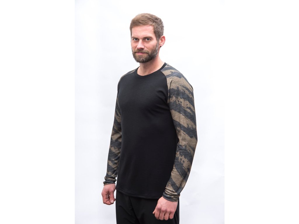 SENSOR MERINO BLEND IMPRESS pánske tričko s dlhým rukávom čierna/sivá
