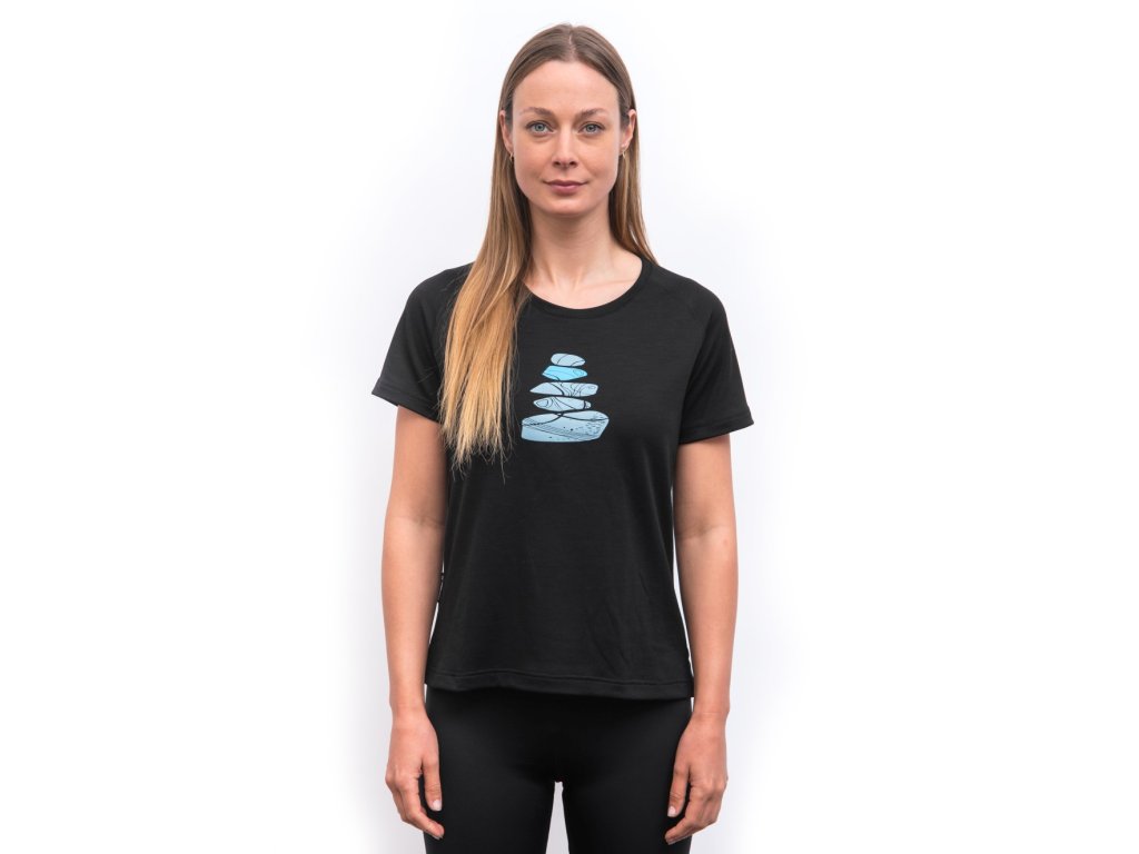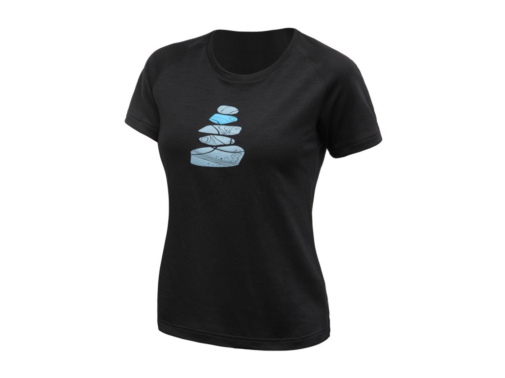 SENSOR MERINO BLEND STONES dámske tričko s krátkym rukávom čierne