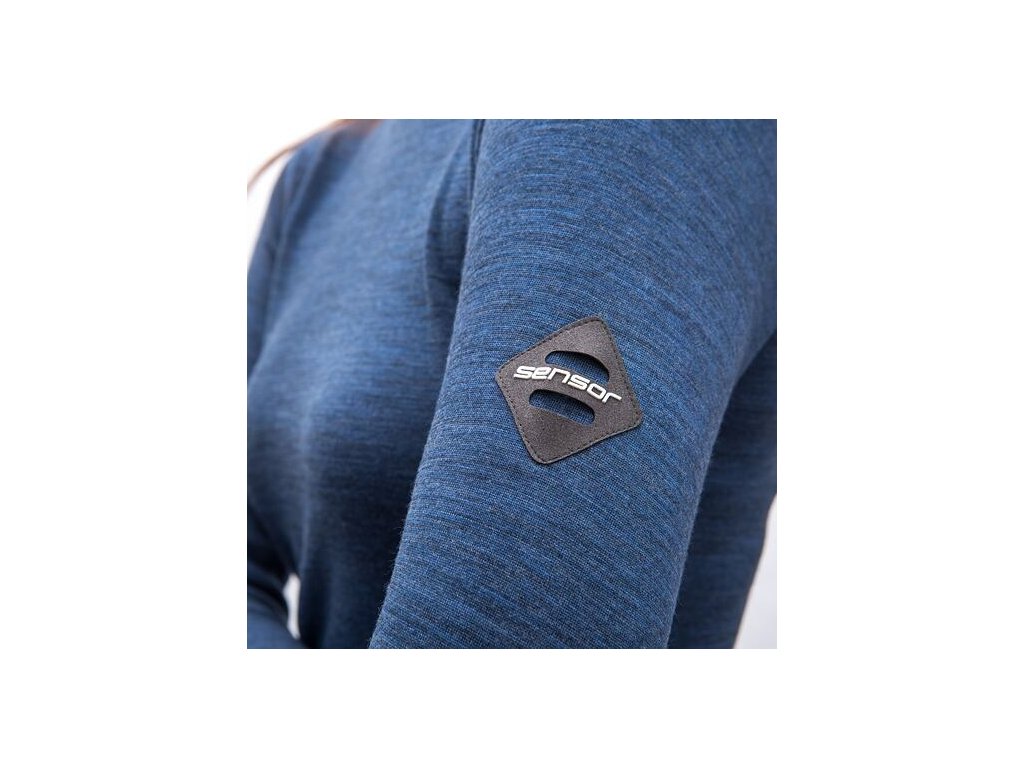 SENSOR MERINO BOLD dámske tričko s dlhým rukávom a výstrihom, cool blue