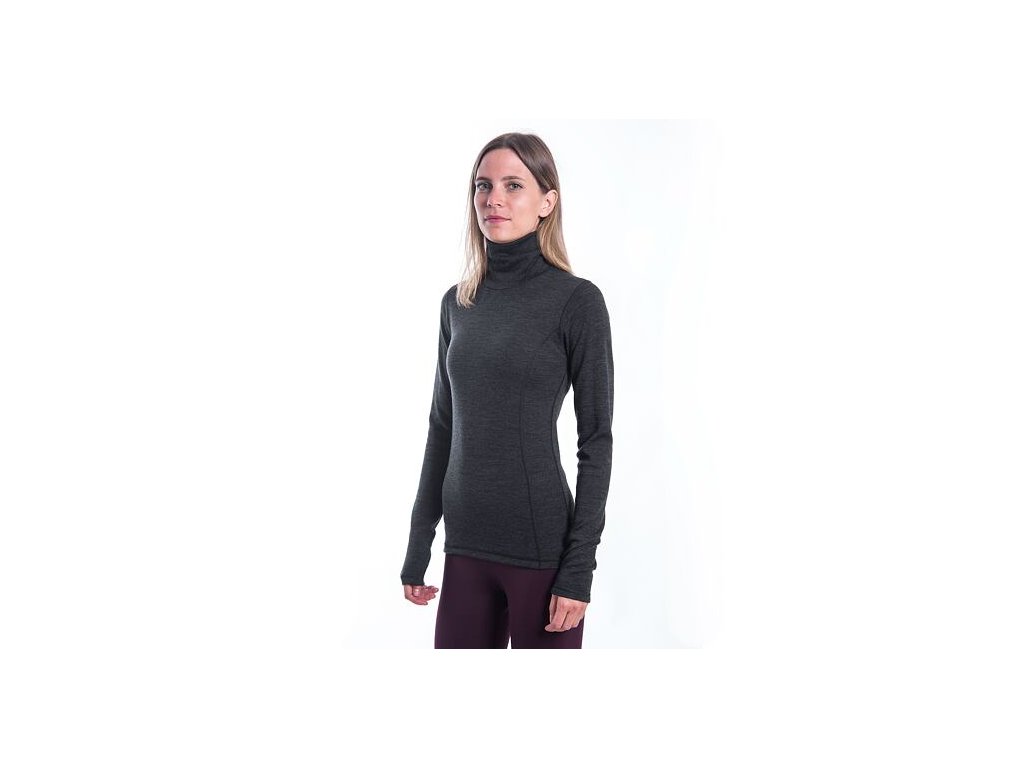 SENSOR MERINO BOLD dámske tričko s dlhým rukávom a výstrihom antracitovo sivá
