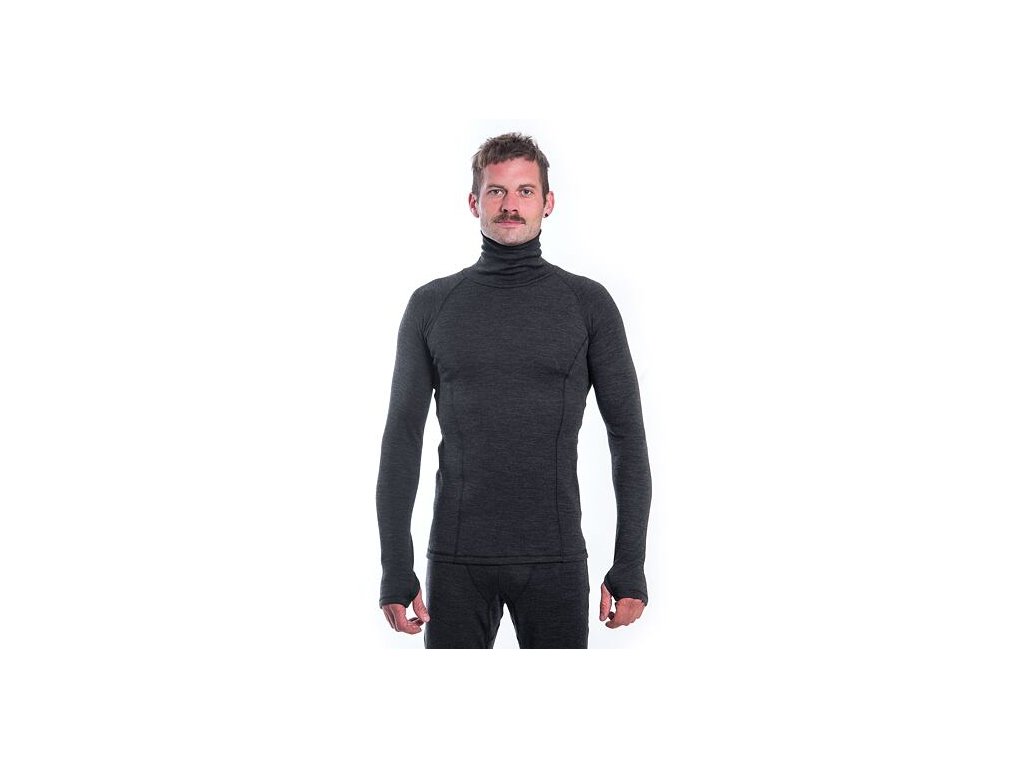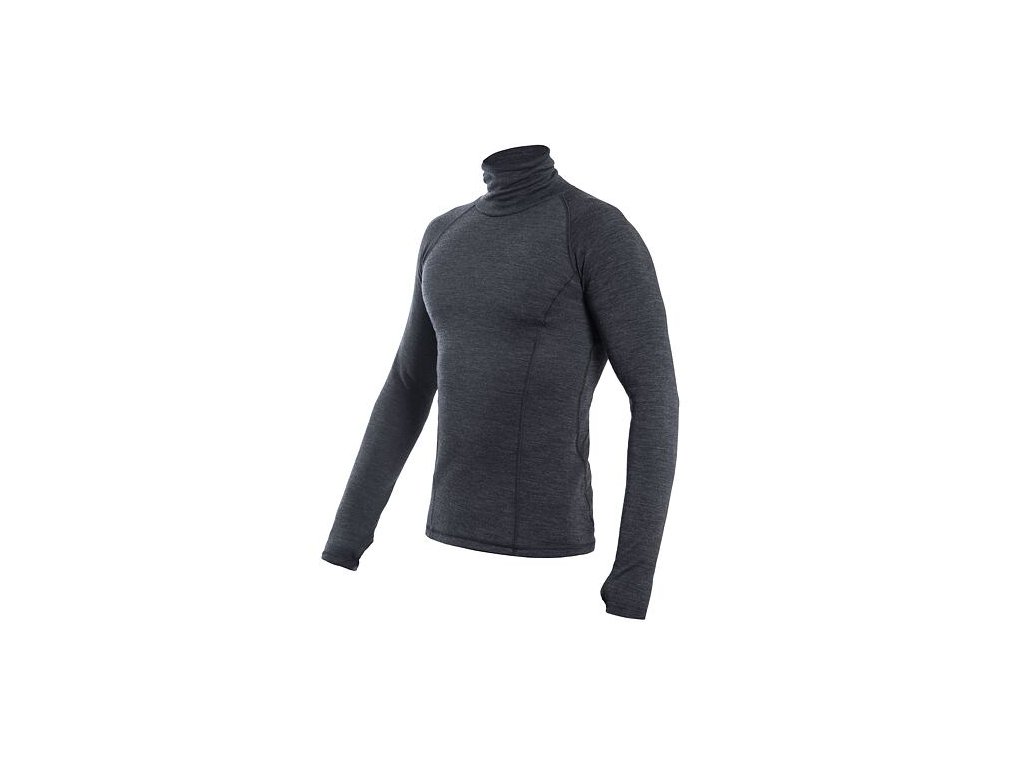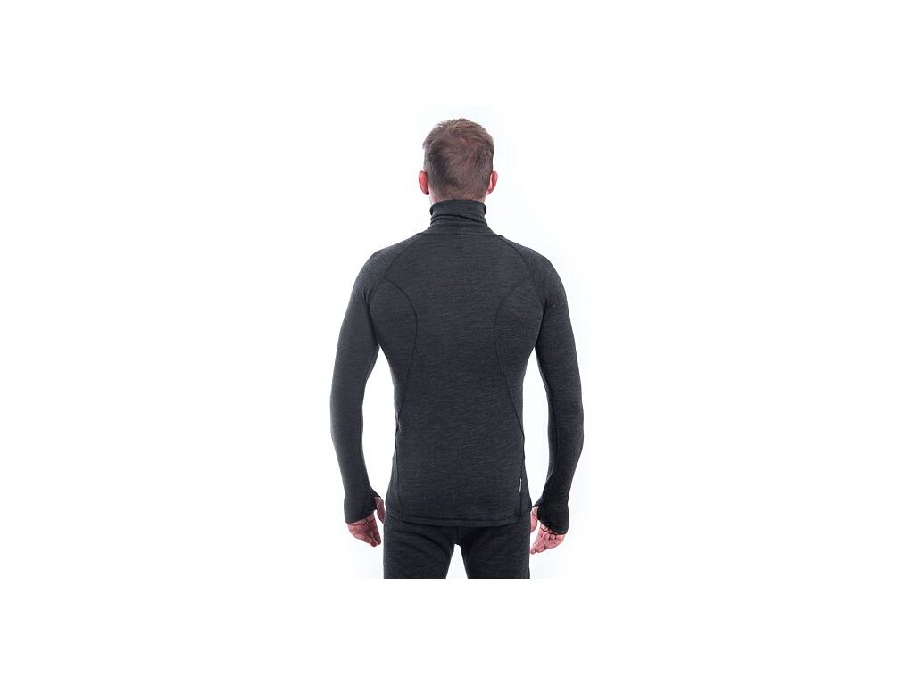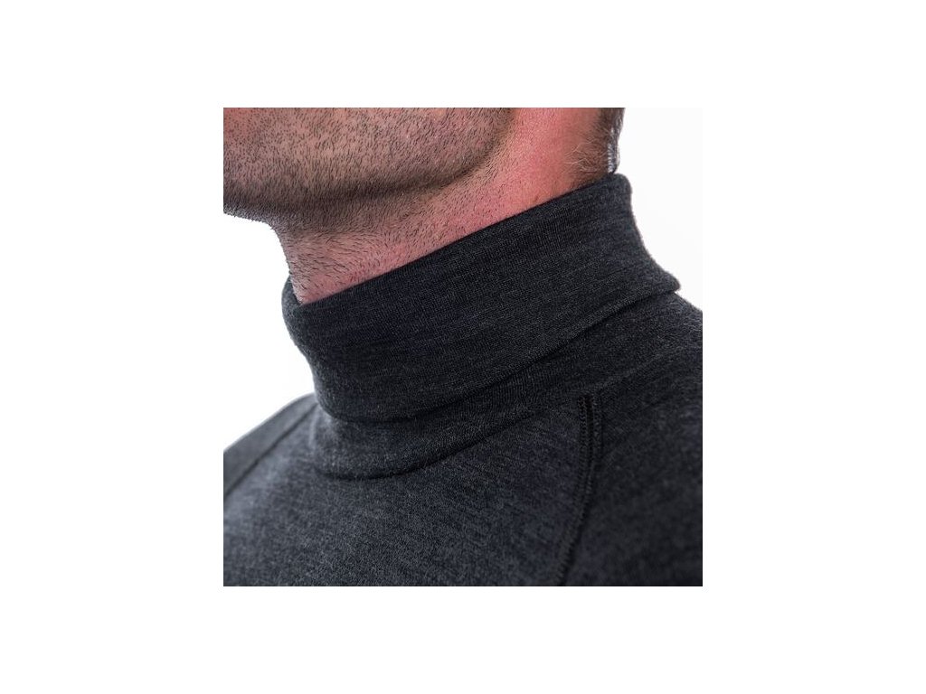 SENSOR MERINO BOLD pánske tričko s dlhým rukávom a výstrihom antracitovo sivá