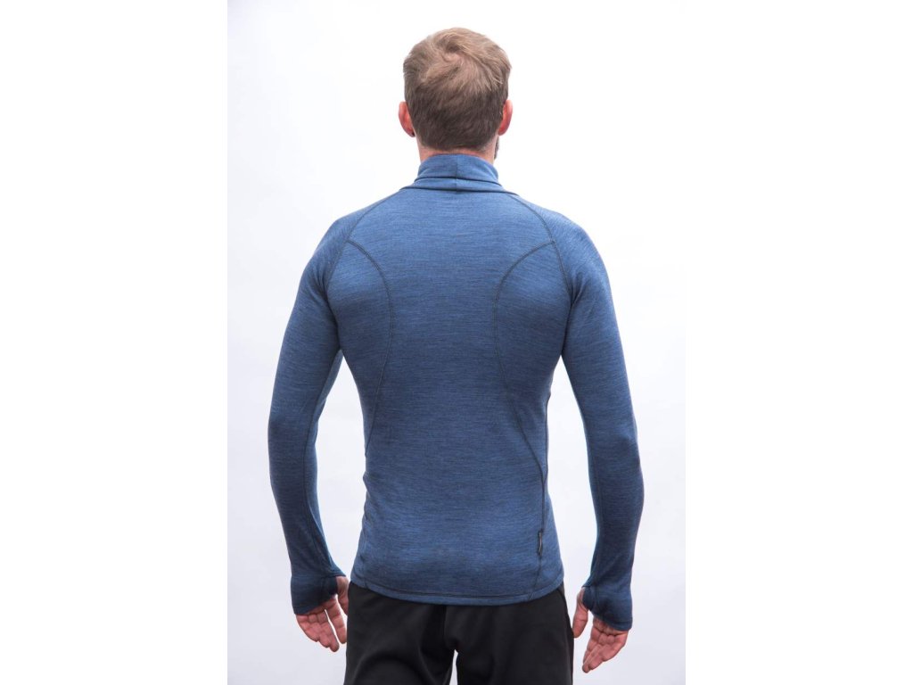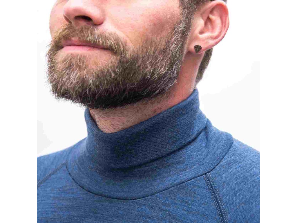 SENSOR MERINO BOLD pánske tričko s dlhým rukávom a výstrihom studená, modrá