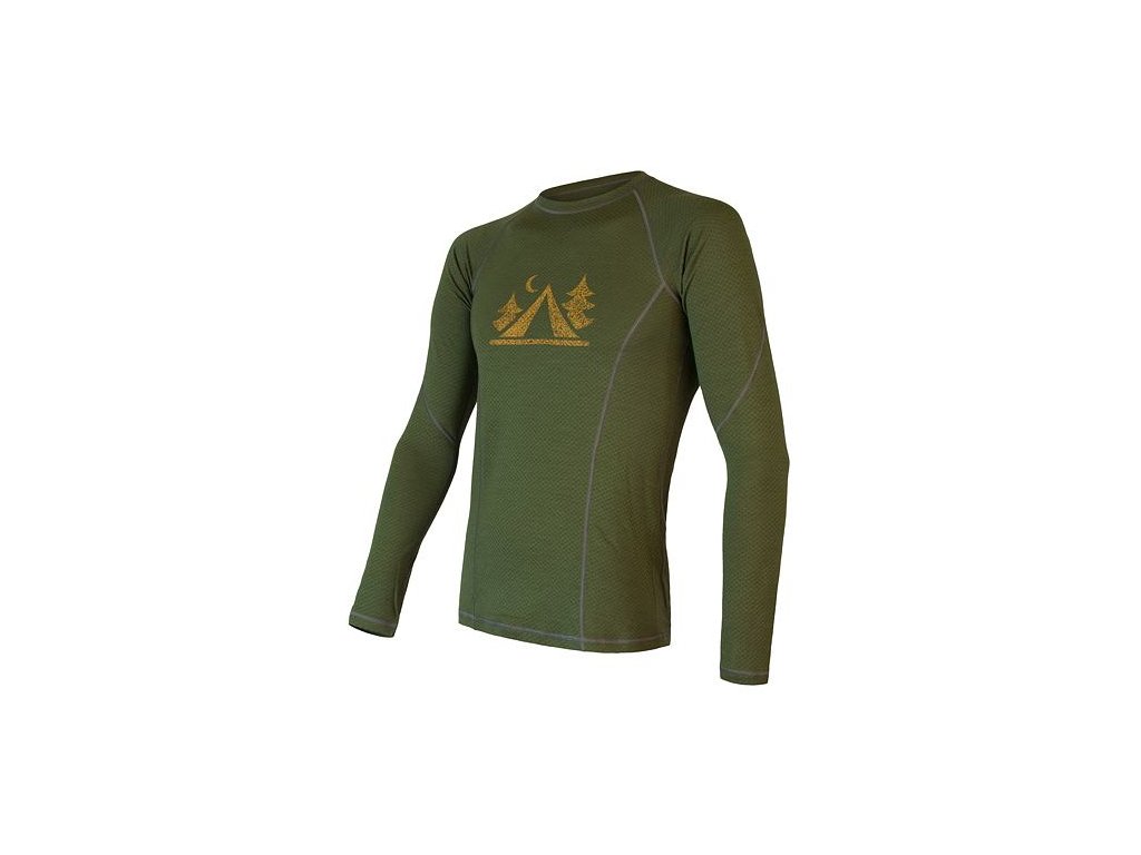 SENSOR MERINO DF CAMP pánske tričko s dlhým rukávom safari zelená