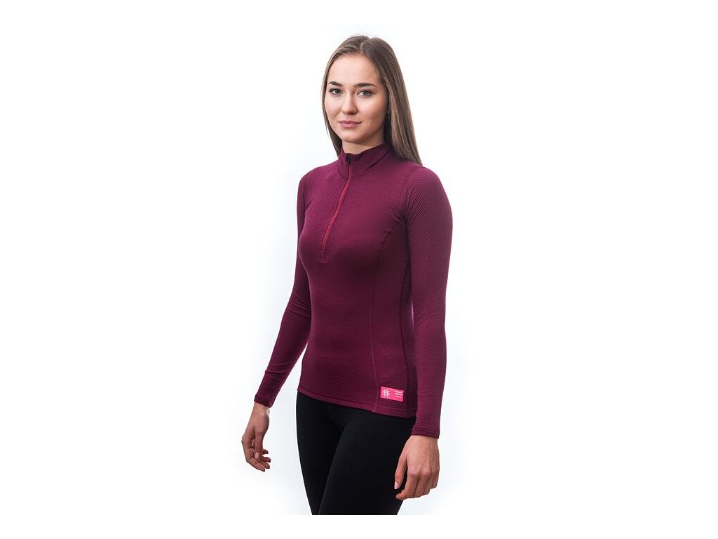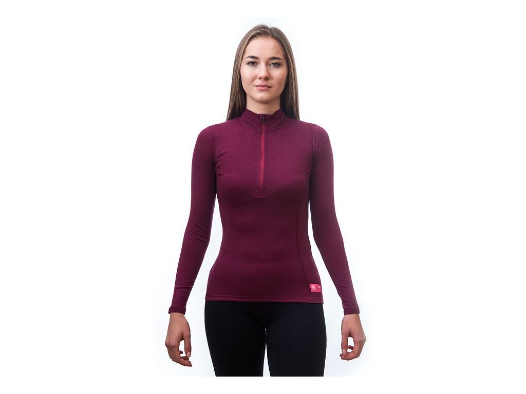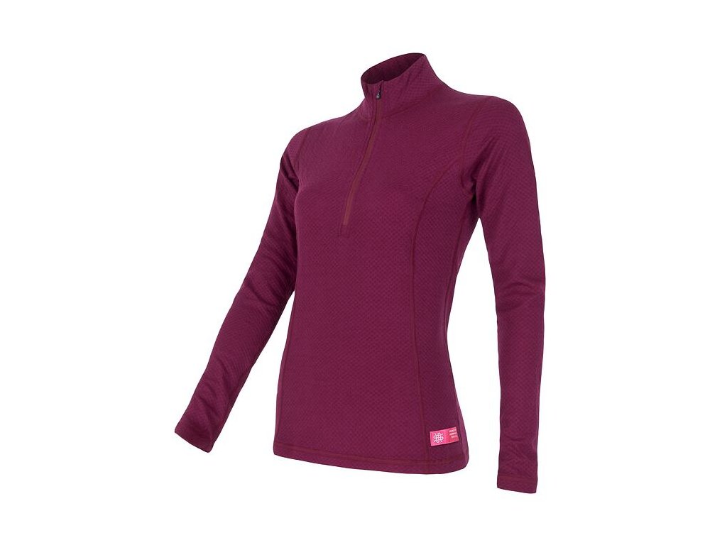 SENSOR MERINO DF dámske tričko s dlhým rukávom na zips lila
