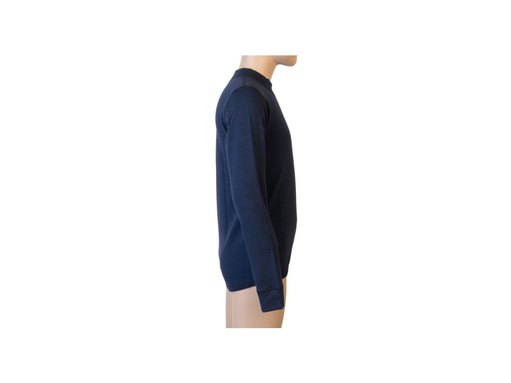Tričko s dlhými rukávmi vyrobené z úpletu unikátnej konštrukcie, ktorá kombinuje polyester na vnútornej strane a vysoko kvalitnú merino vlnu z Nového Zélandu.