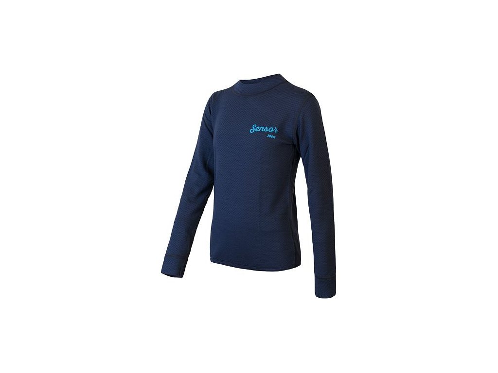 SENSOR MERINO DF LOGO juniorské tričko s dlhým rukávom deep blue