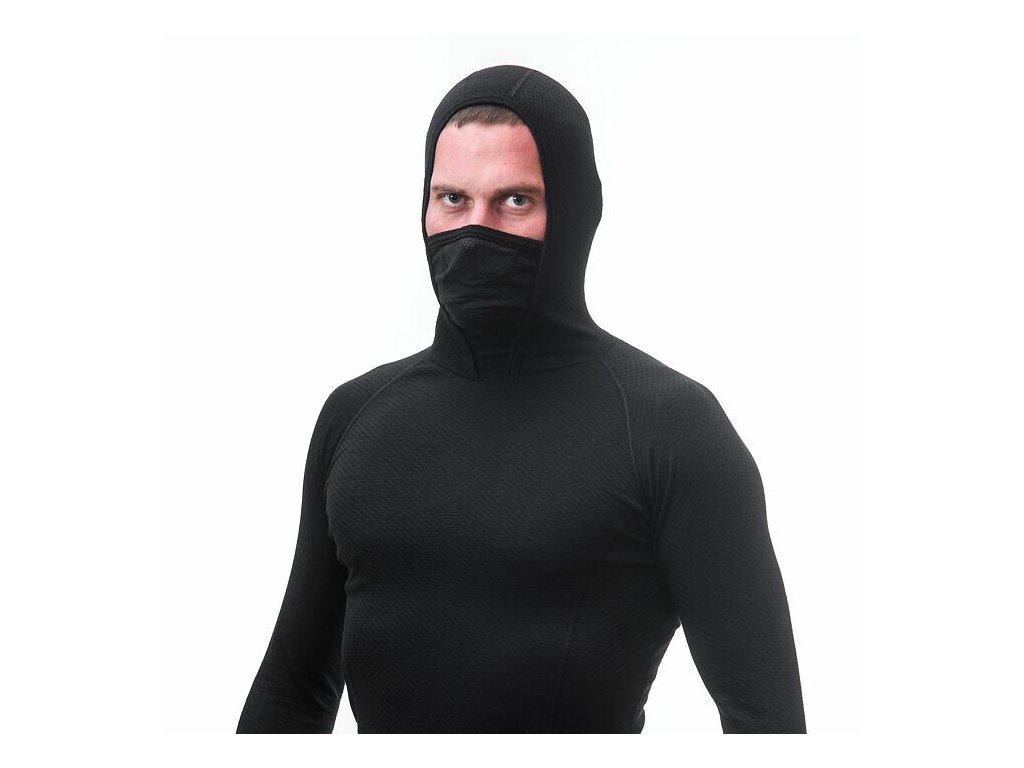 SENSOR MERINO DF pánske tričko s dlhým rukávom a kapucňou, čierna