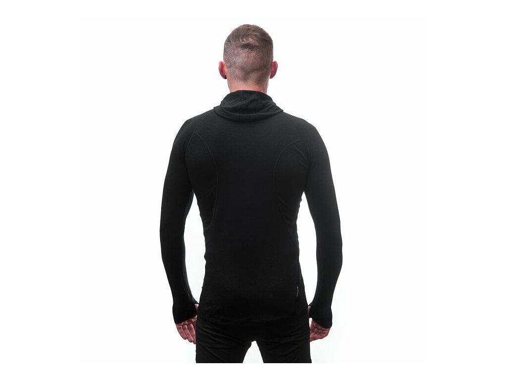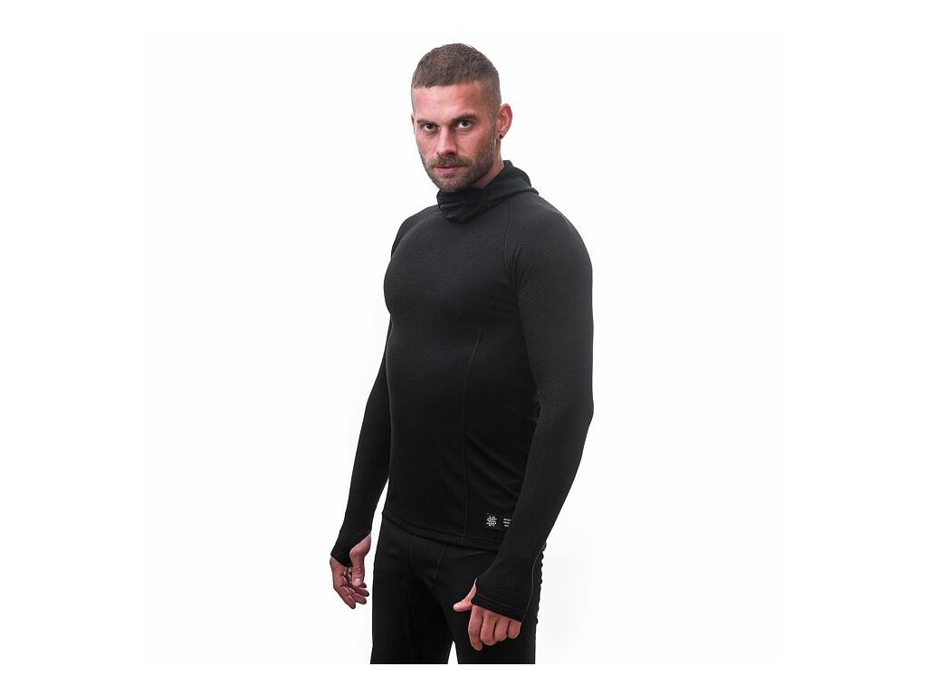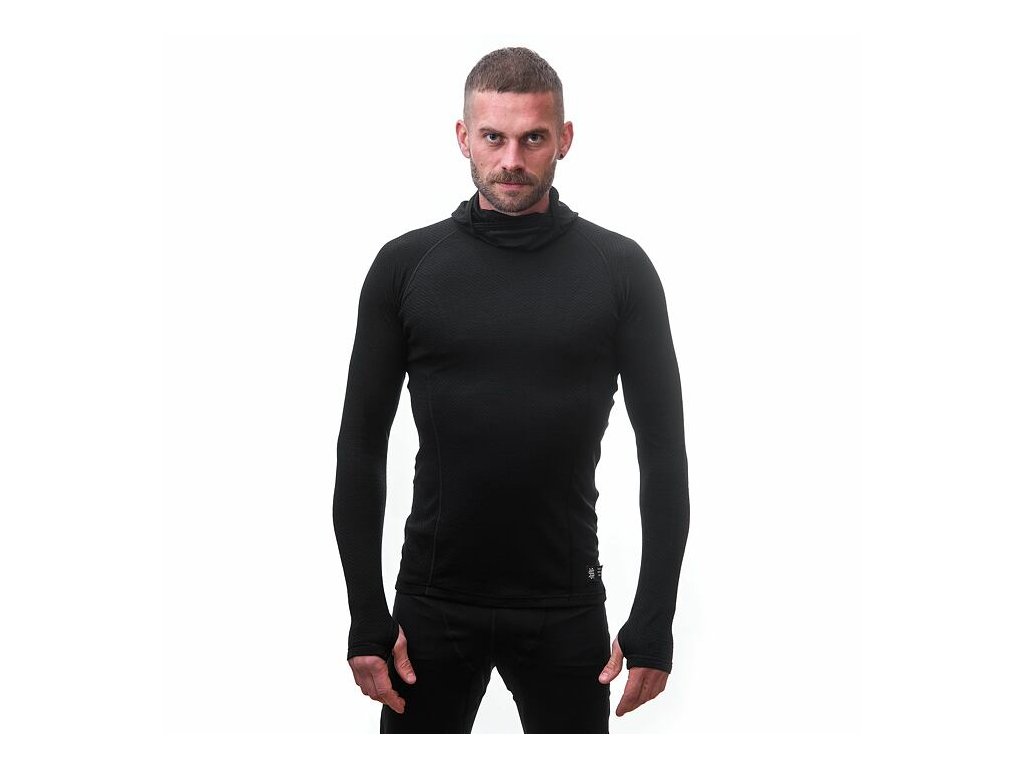 SENSOR MERINO DF pánske tričko s dlhým rukávom a kapucňou čierna