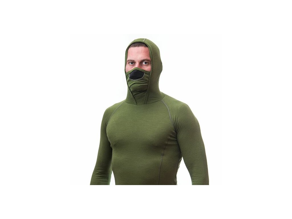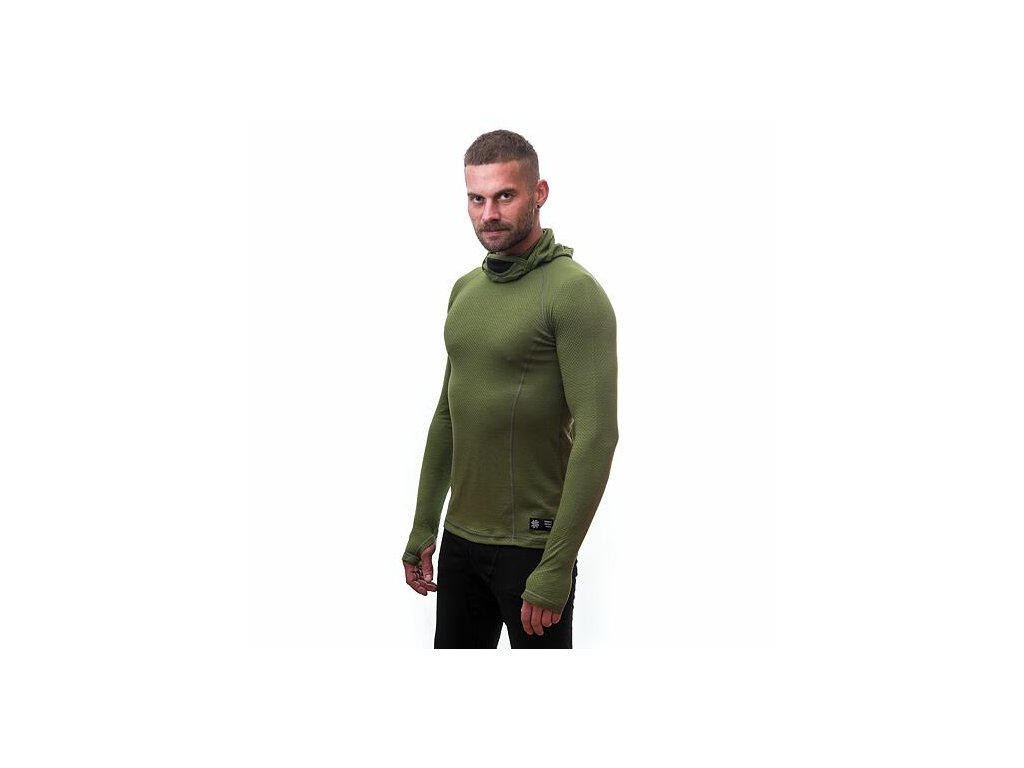 SENSOR MERINO DF pánske tričko s dlhým rukávom a kapucňou safari