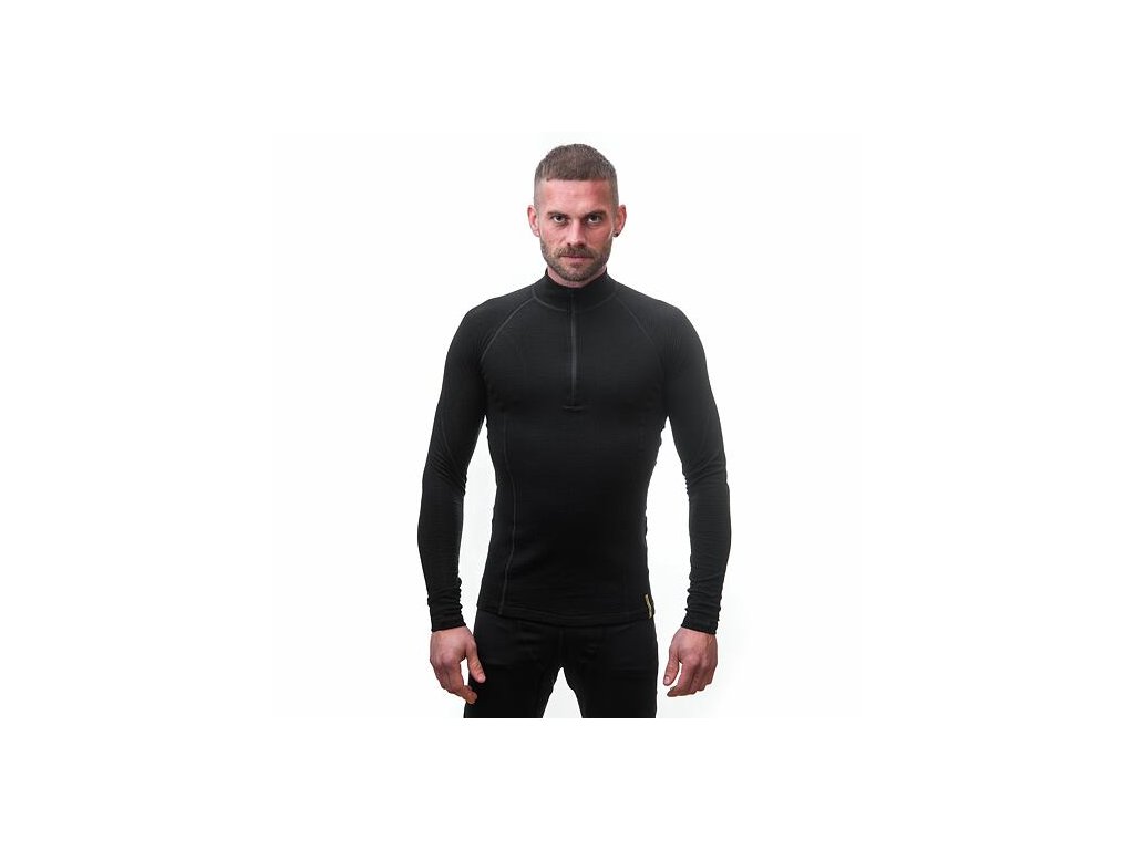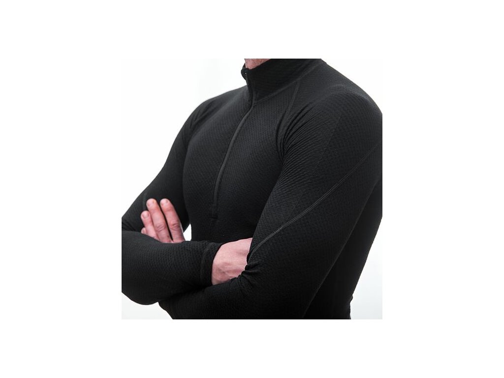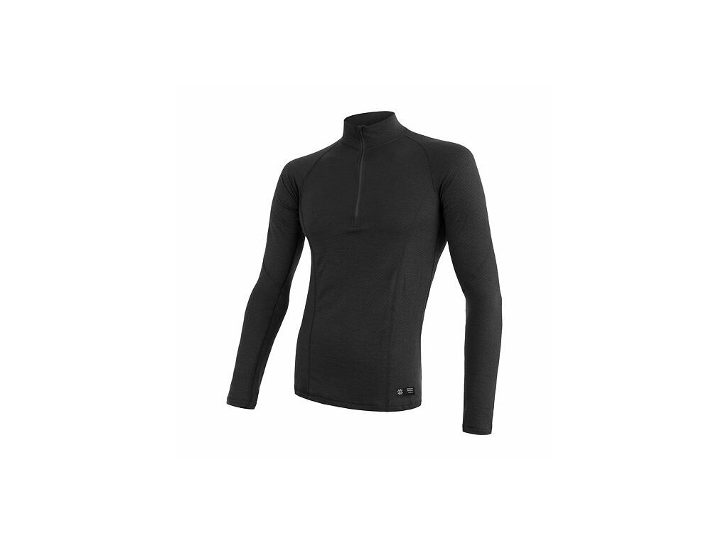 SENSOR MERINO DF pánske tričko s dlhým rukávom na zips, čierna