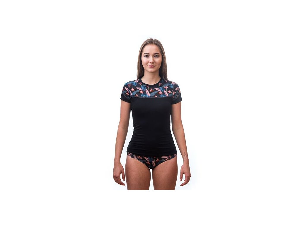 SENSOR MERINO IMPRESS dámske tričko s krátkym rukávom čierna/floral