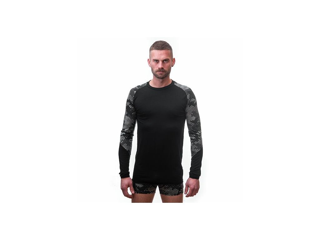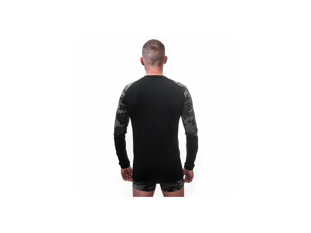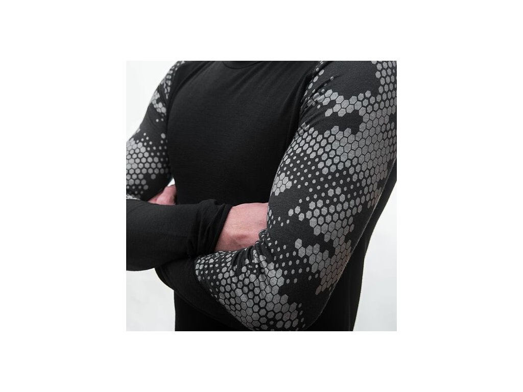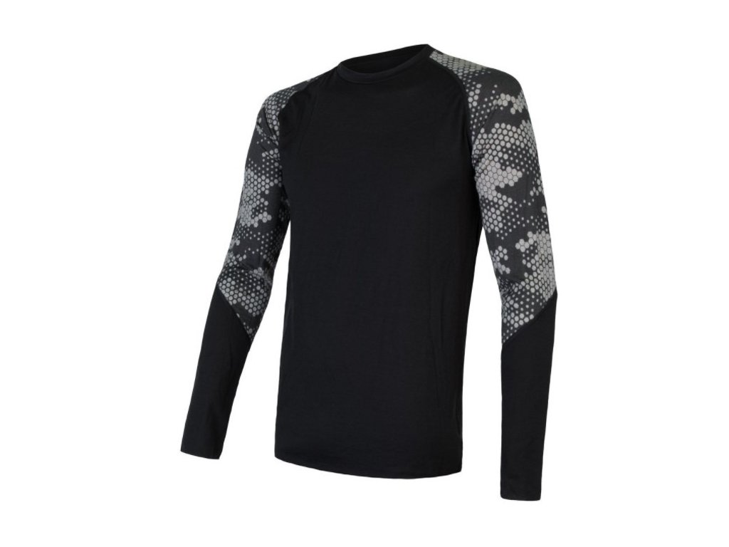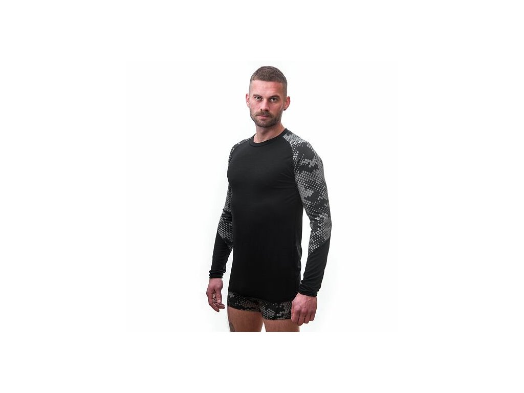 SENSOR MERINO IMPRESS pánske tričko s dlhým rukávom black/honeycomb