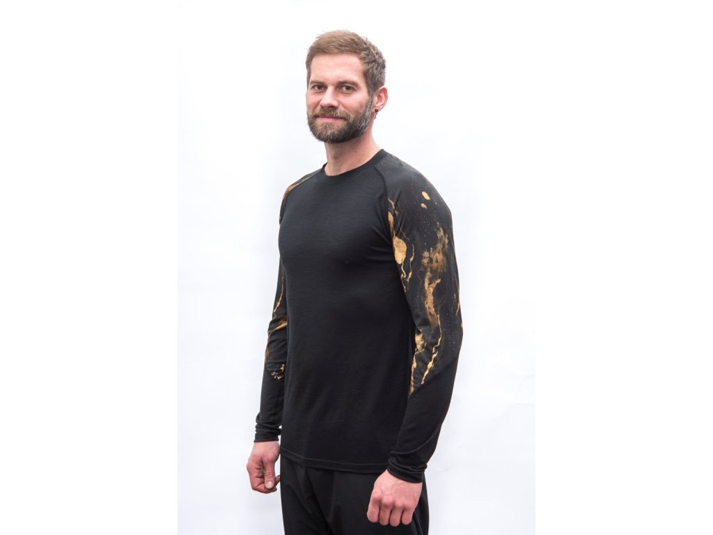 SENSOR MERINO IMPRESS pánske tričko s dlhým rukávom čierna/cosmos