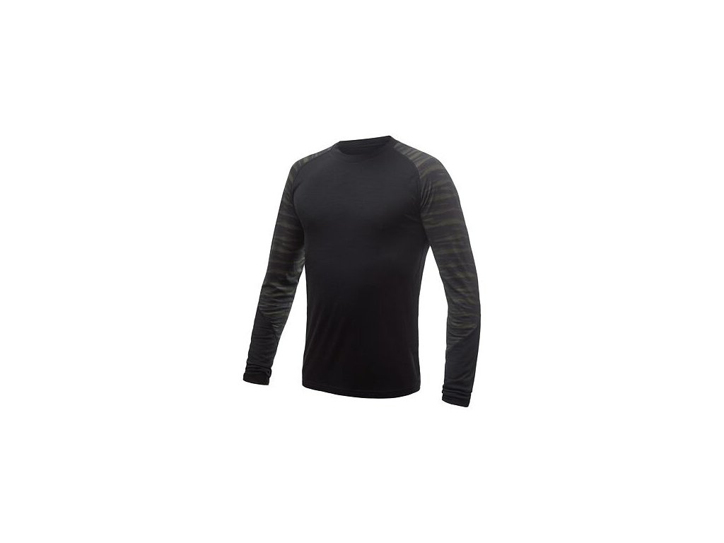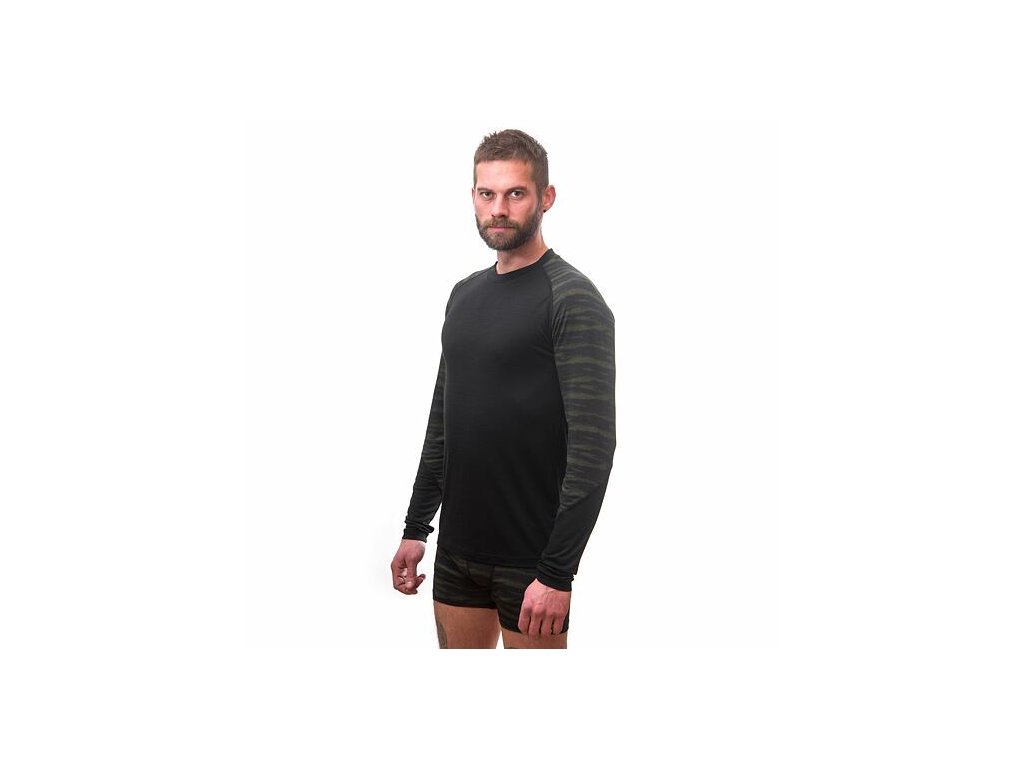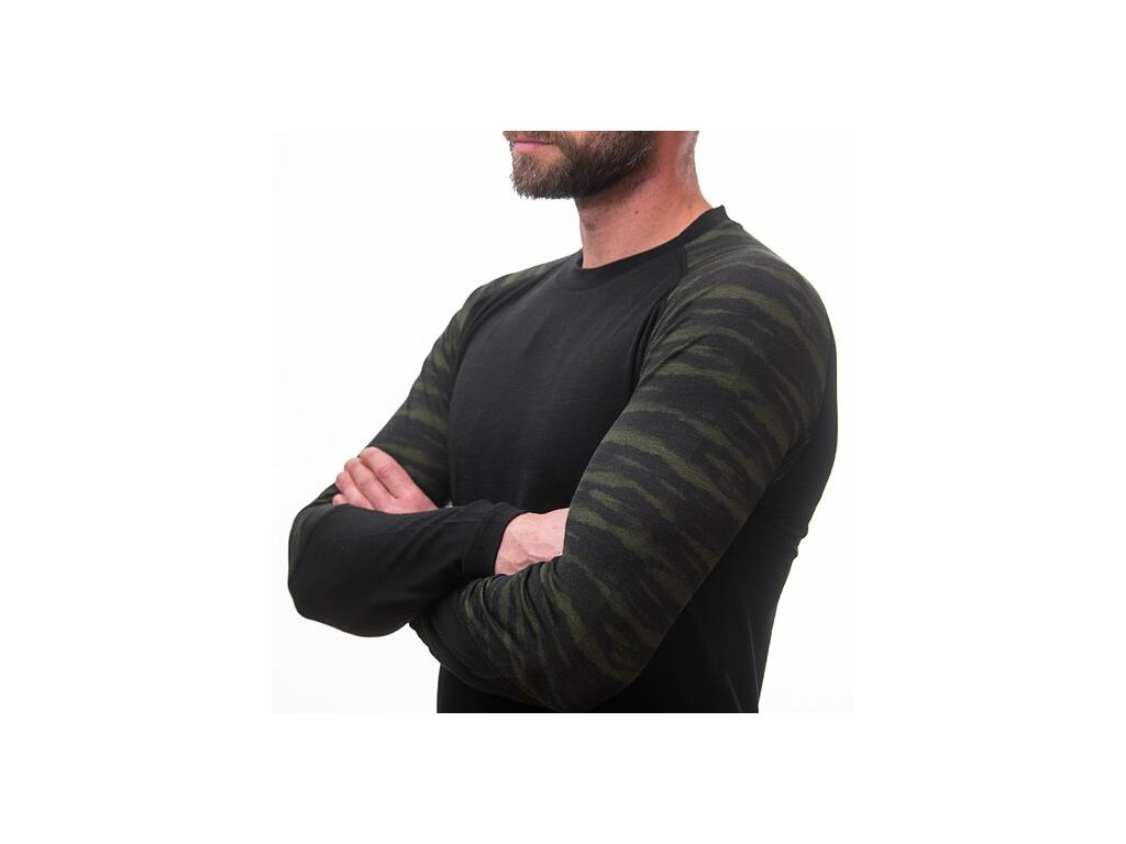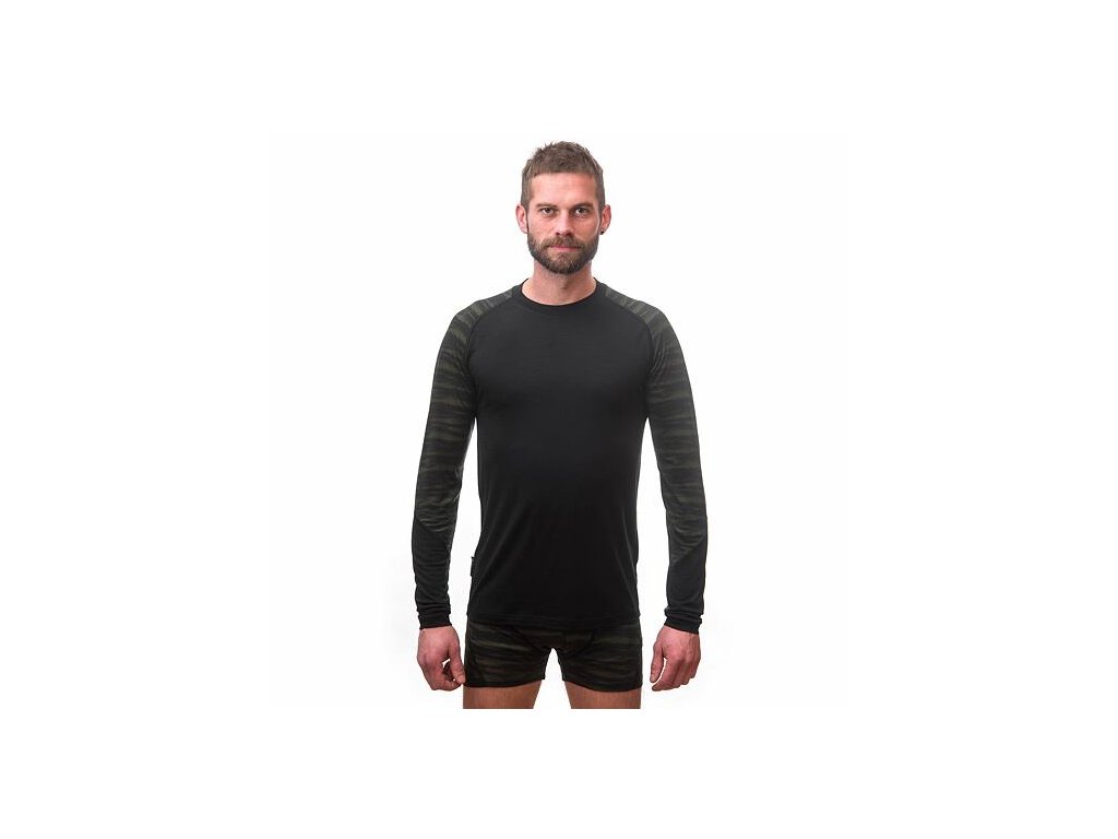SENSOR MERINO IMPRESS pánske tričko s dlhým rukávom čierne/batik
