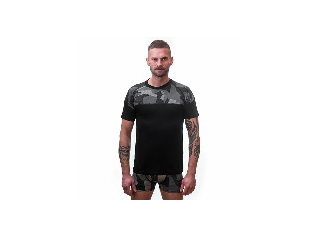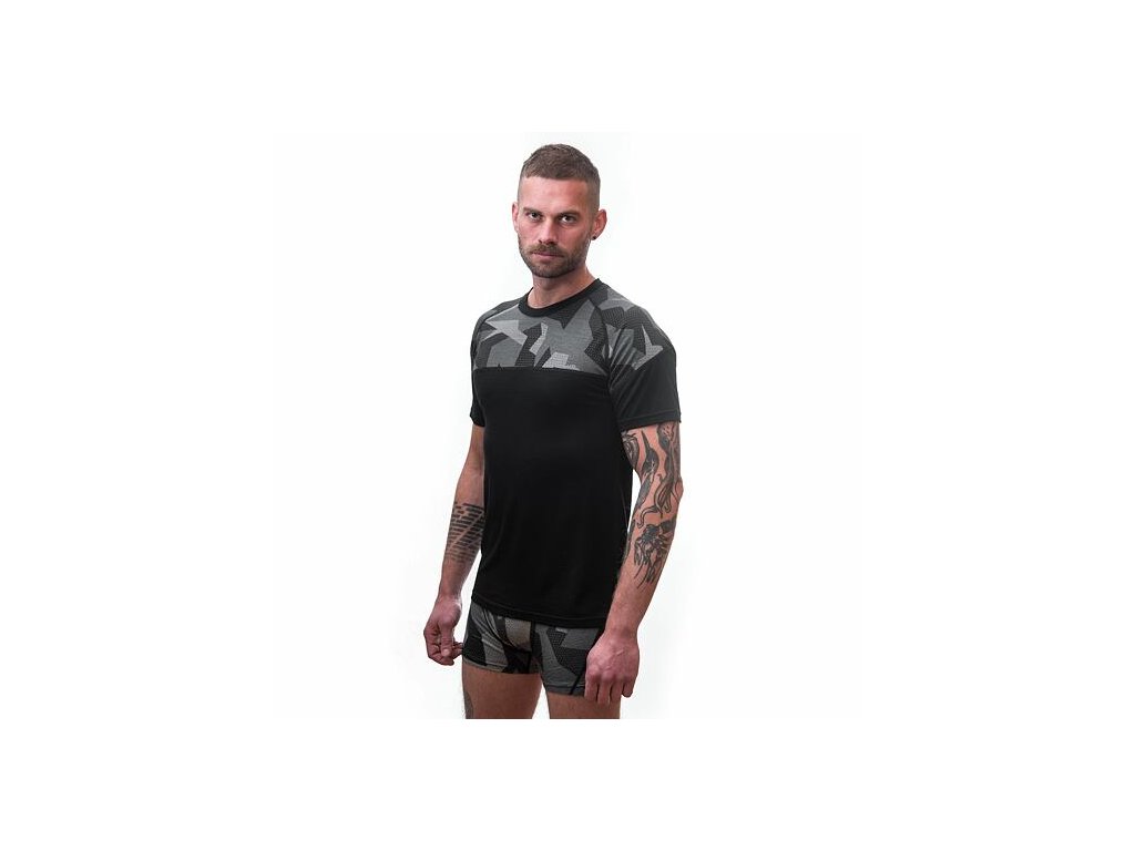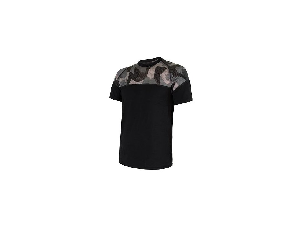 SENSOR MERINO IMPRESS pánske tričko s krátkym rukávom čierna/camo