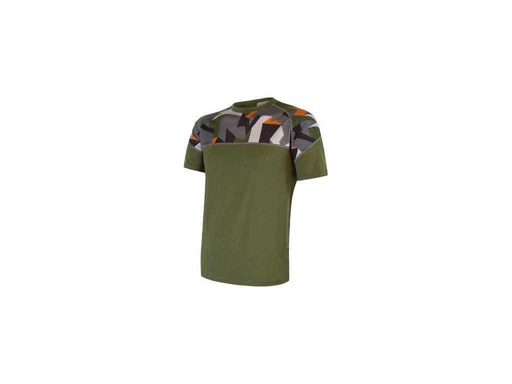 SENSOR MERINO IMPRESS pánske tričko s krátkým rukávom safari/camo