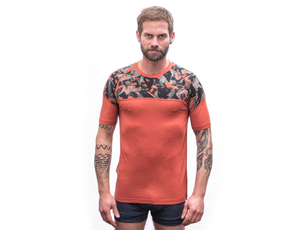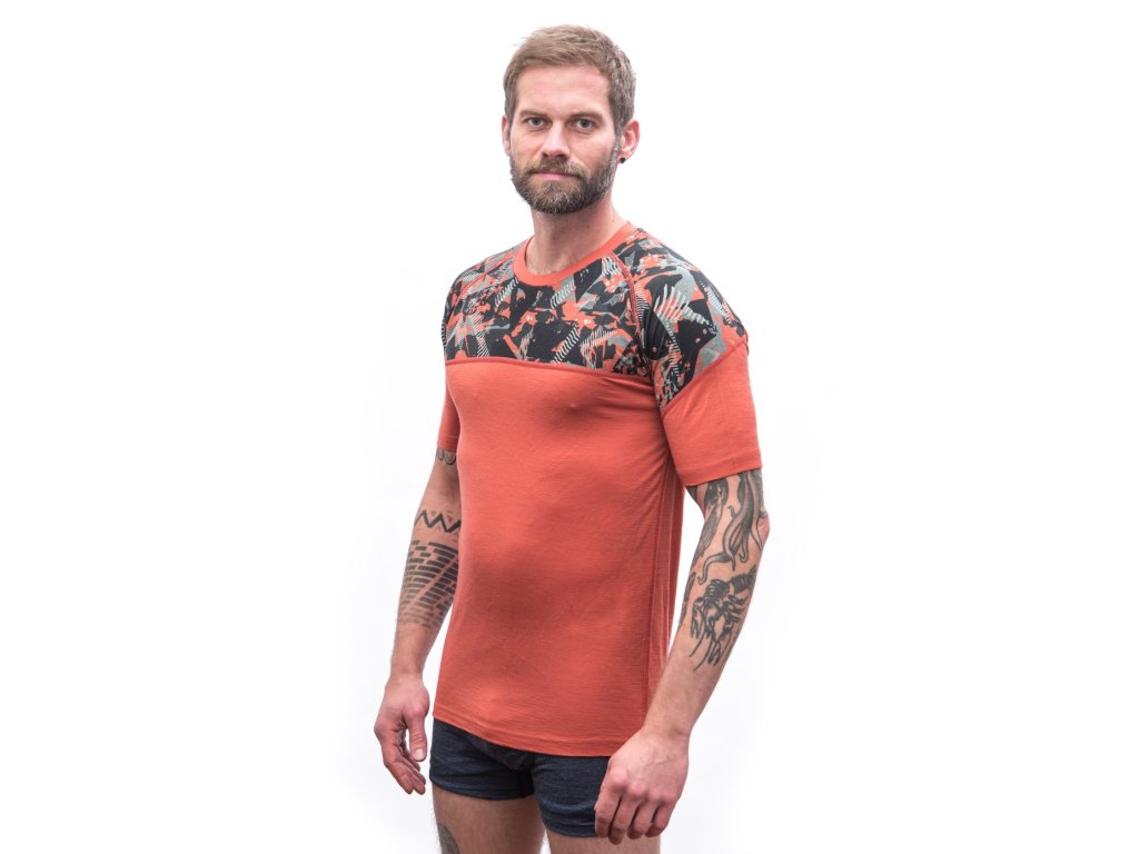 SENSOR MERINO IMPRESS pánske tričko s krátkým rukávom terakota/rush