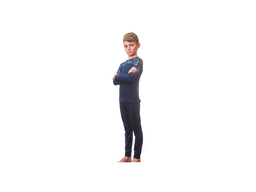 SENSOR MERINO IMPRESS SET detské tričko s dlhým rukávom+spodky, deep blue