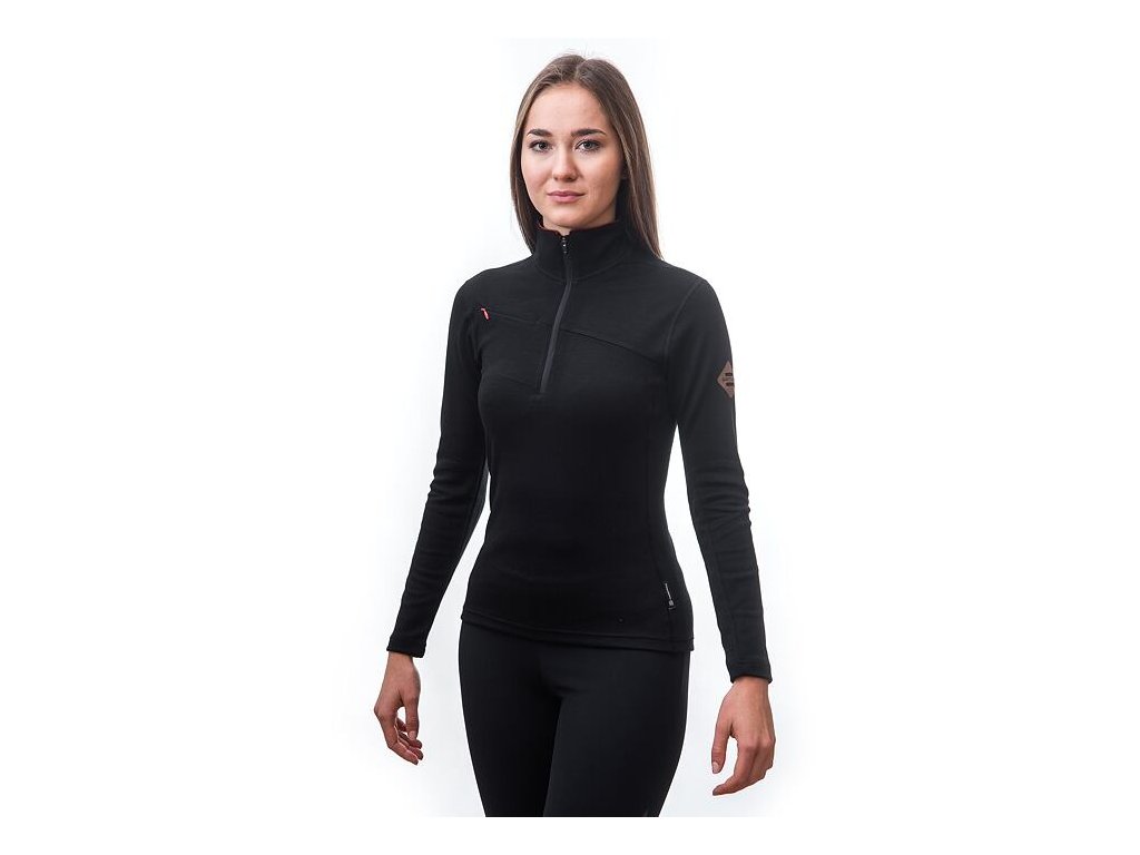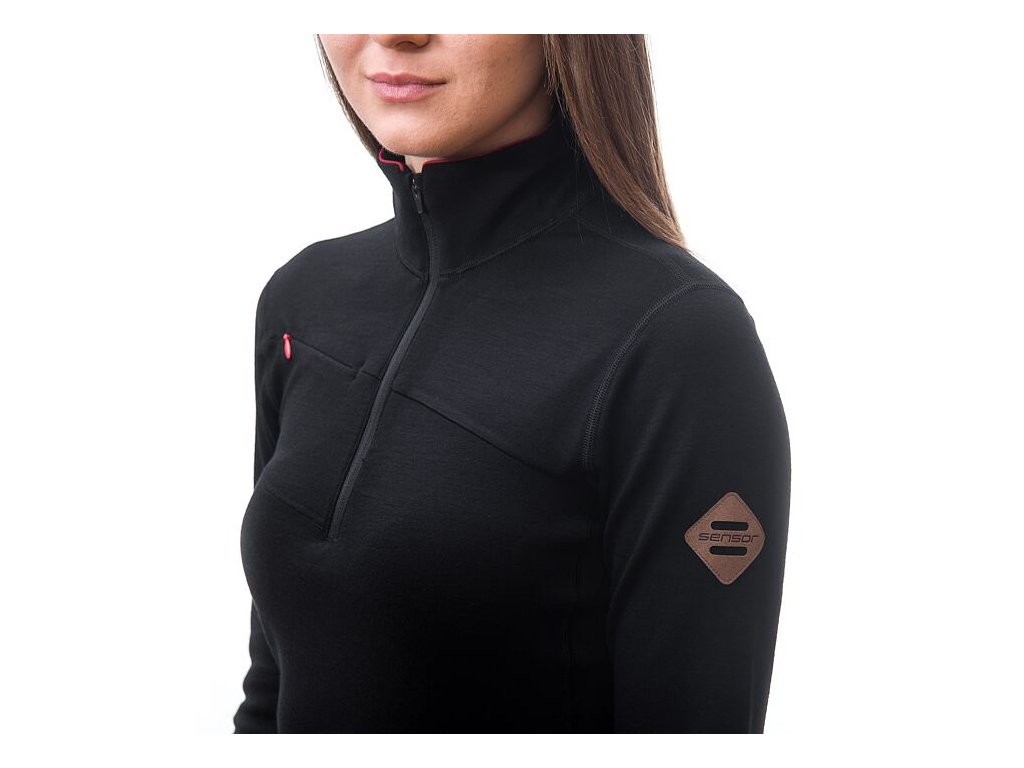 SENSOR MERINO UPPER dámska mikina s krátkym zipsom čierna