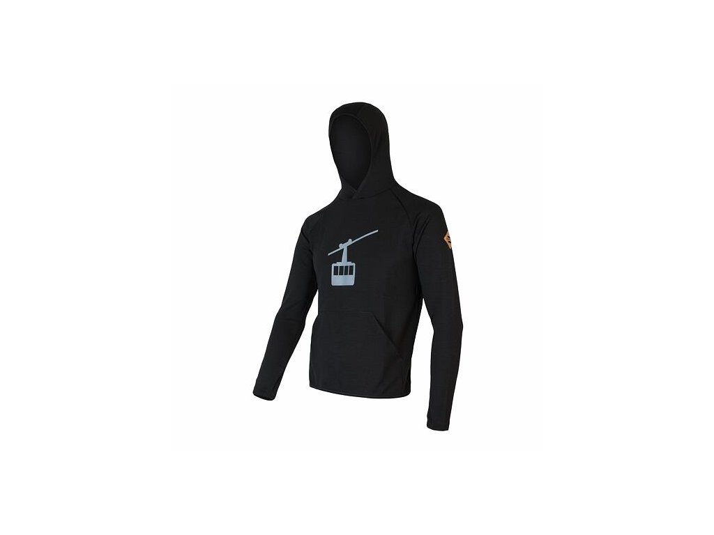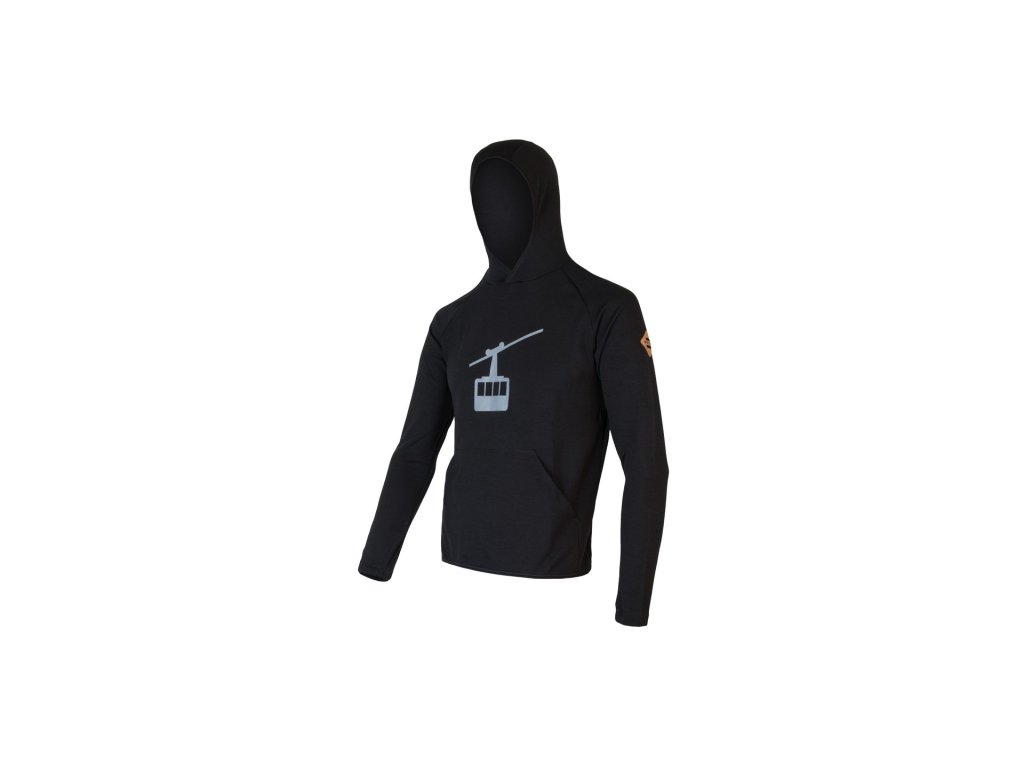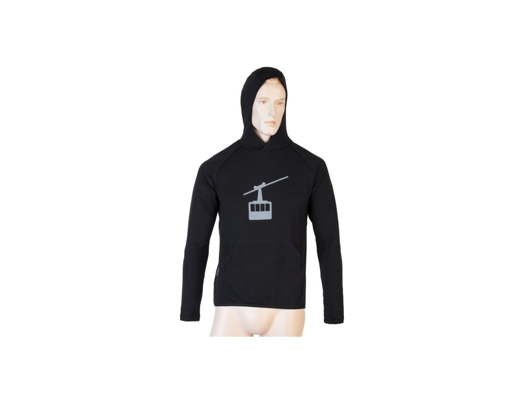 SENSOR MERINO UPPER GONDOLA pánska mikina s klokankou čierna