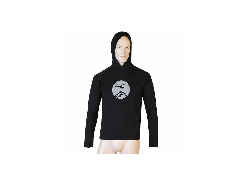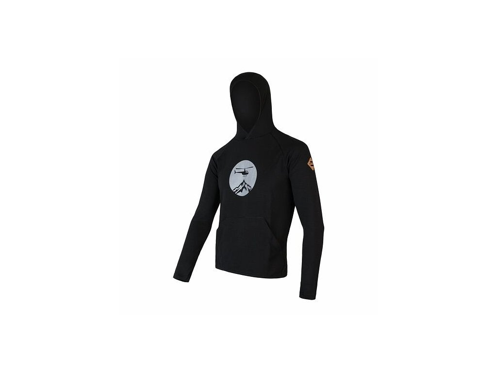 SENSOR MERINO UPPER HELI pánska klokanka s kapucňou čierna