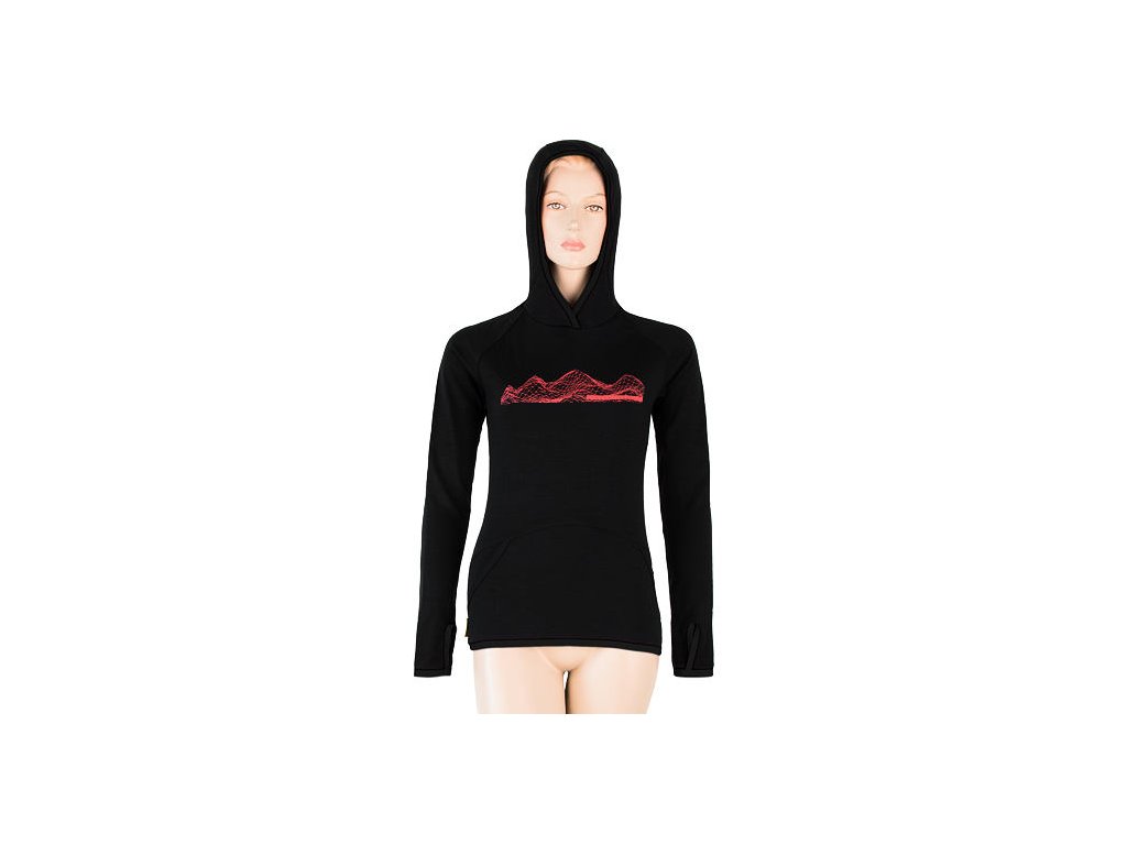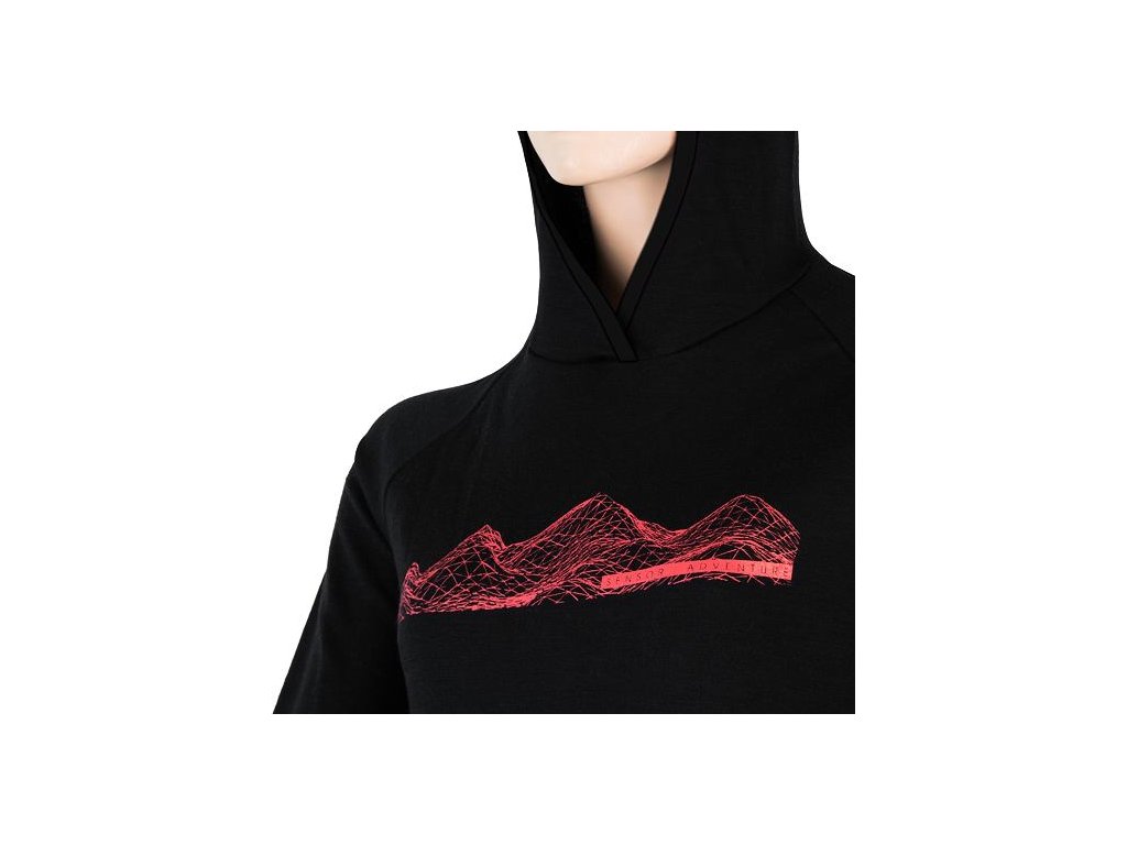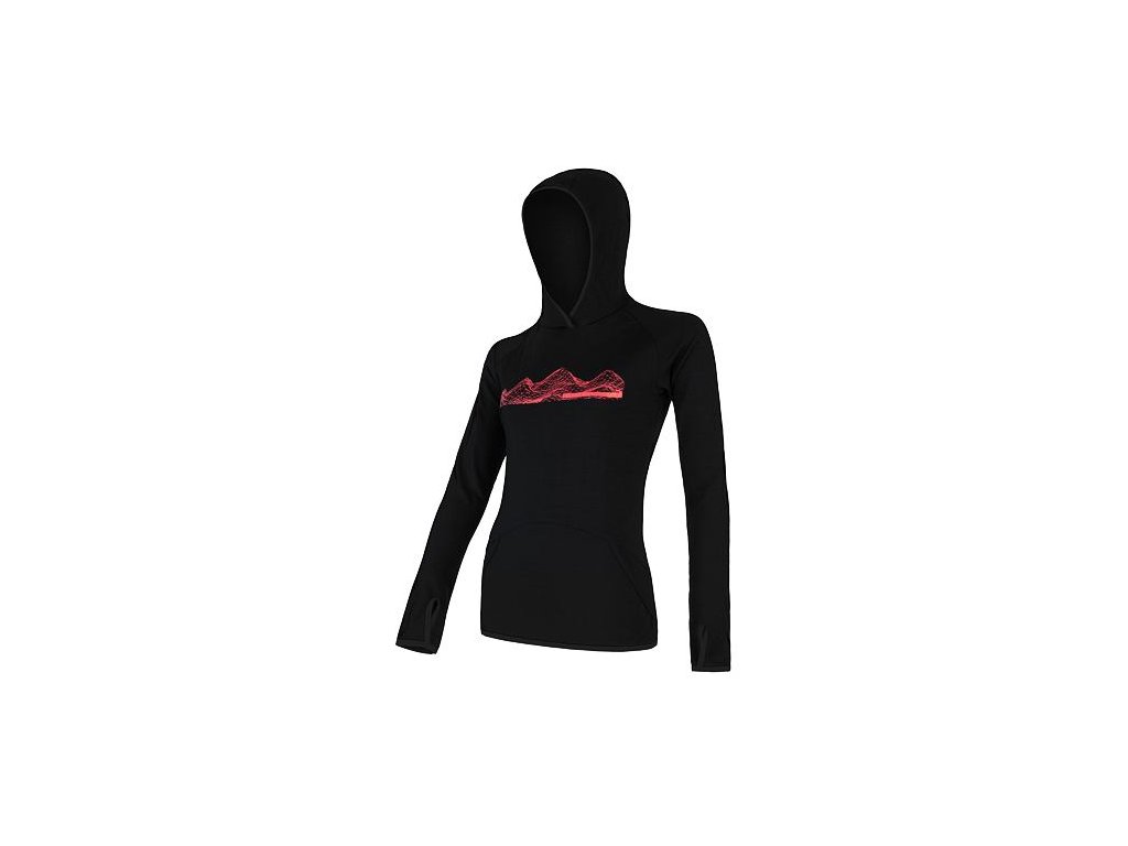 SENSOR MERINO UPPER MOUNTAINS dámska mikina klokanka s kapucňou, čierna