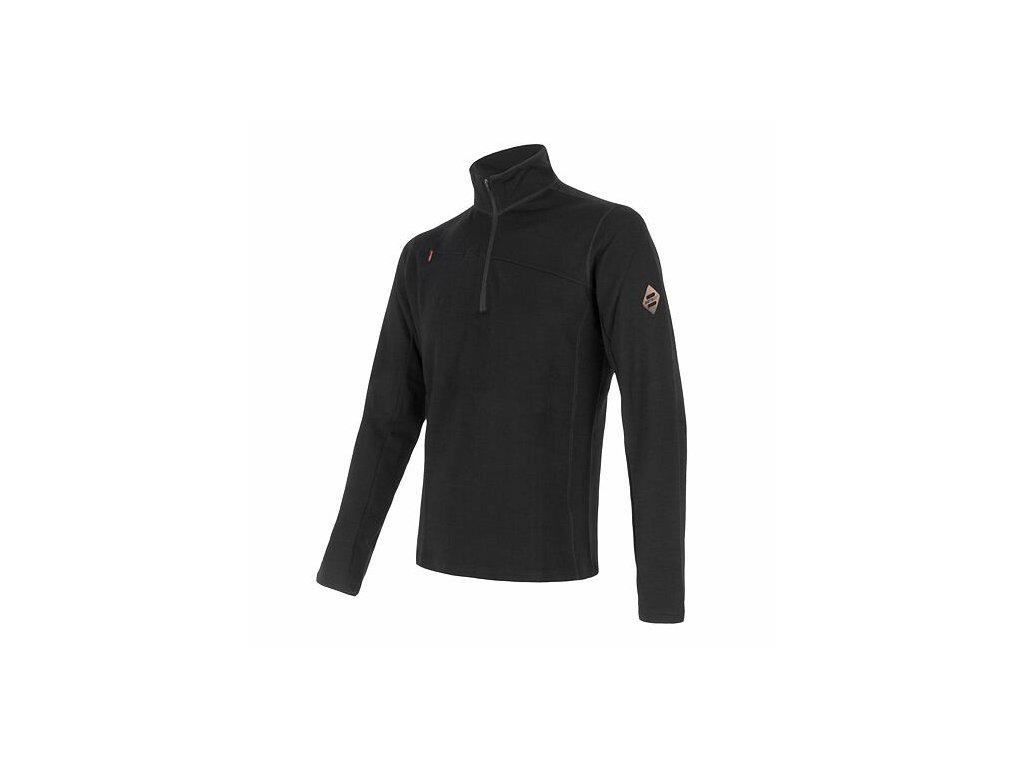 SENSOR MERINO UPPER pánska mikina s krátkym zipsom čierna